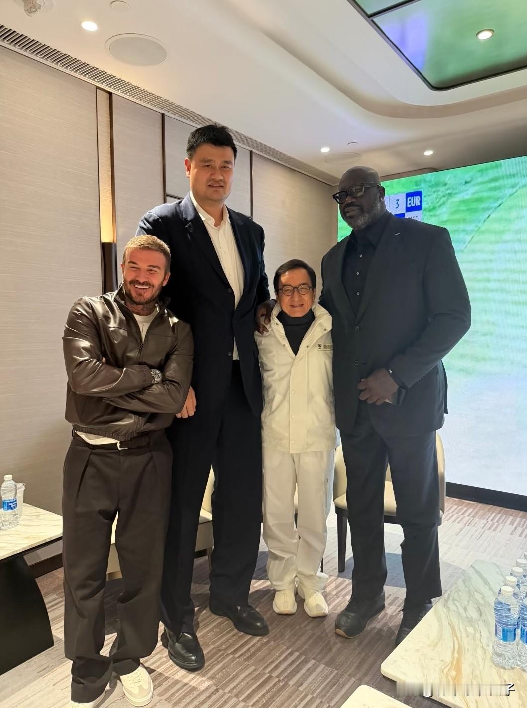 左一贝克汉姆,183cm。 左二姚明,身高2.26cm。 左三成龙,身高174cm。 右边奥尼尔,身高2.16cm。 四人一起在澳门NBA中国赛现场同框, 最萌身高差来了,成龙和贝克汉姆有种小手办的既视感。 四人同框,有没有萌到你呢?