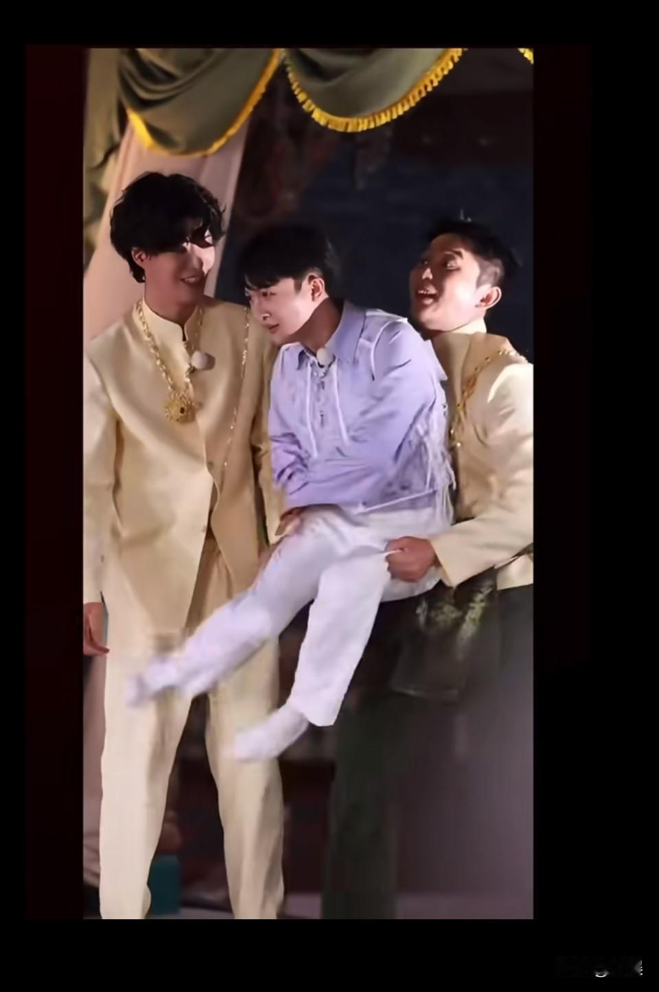 周深被大黑牛拎起来的瞬间感觉腿都不是他自己的了哈哈哈😹周腿太细了,拎起来感觉像假腿一样… 跟这俩大高个在一起,显得深深好迷你一只,晨哥好轻松就把他提起来了😂…所以说,当一只猫不想被抱起来的时候,就怎么都抱不起来。周深 周深身材比例 大黑牛 范丞丞