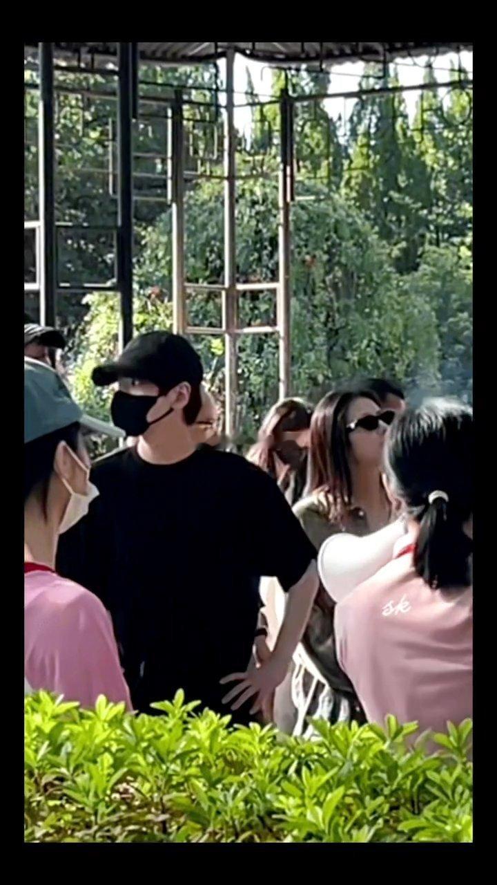 张天爱跟素人合影,胯真的好宽,大宅院似的