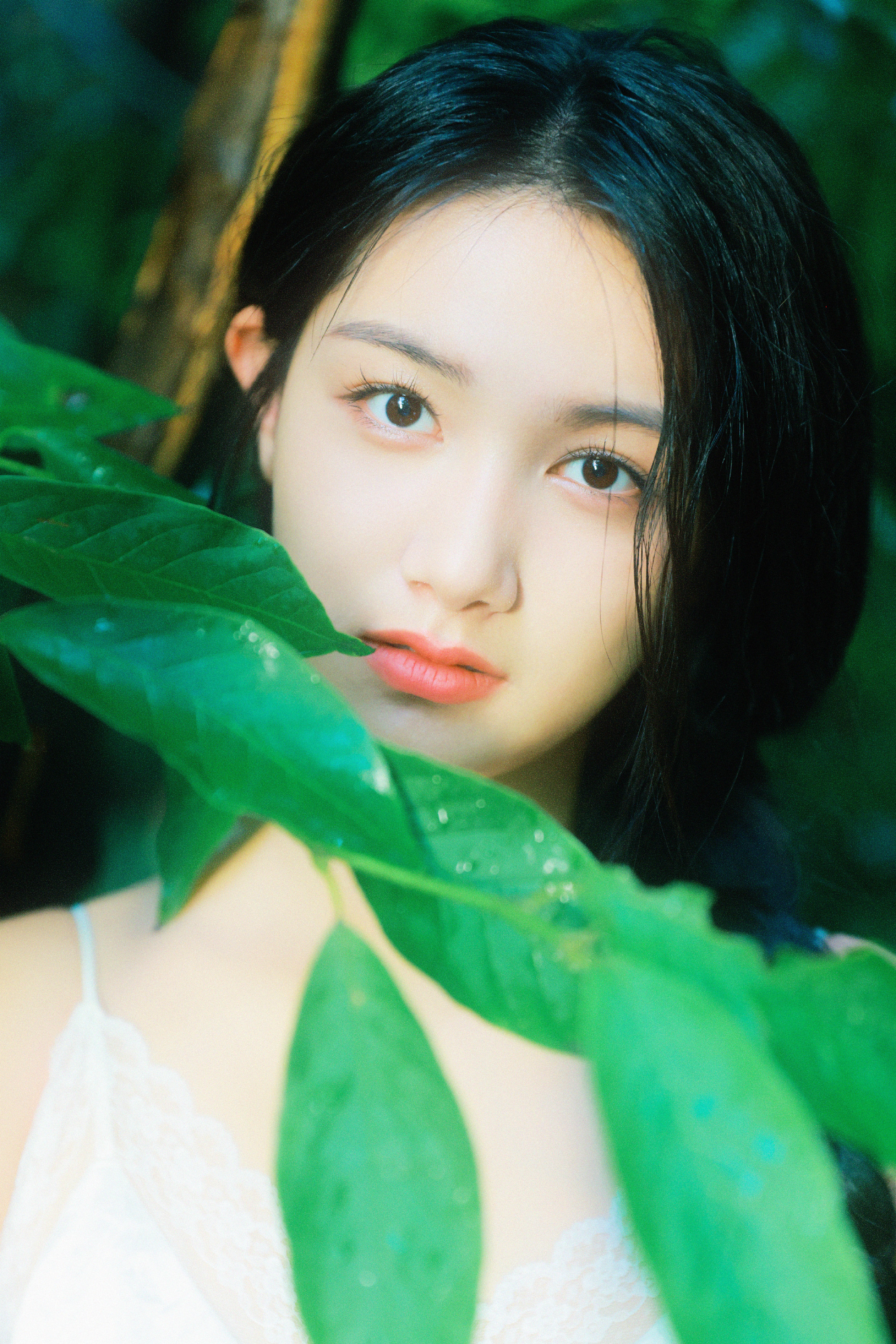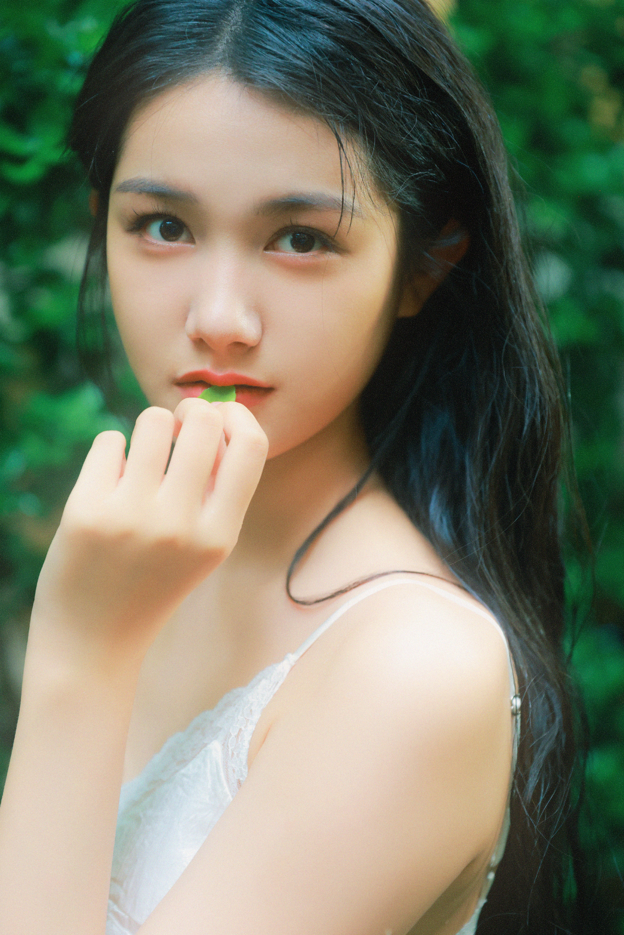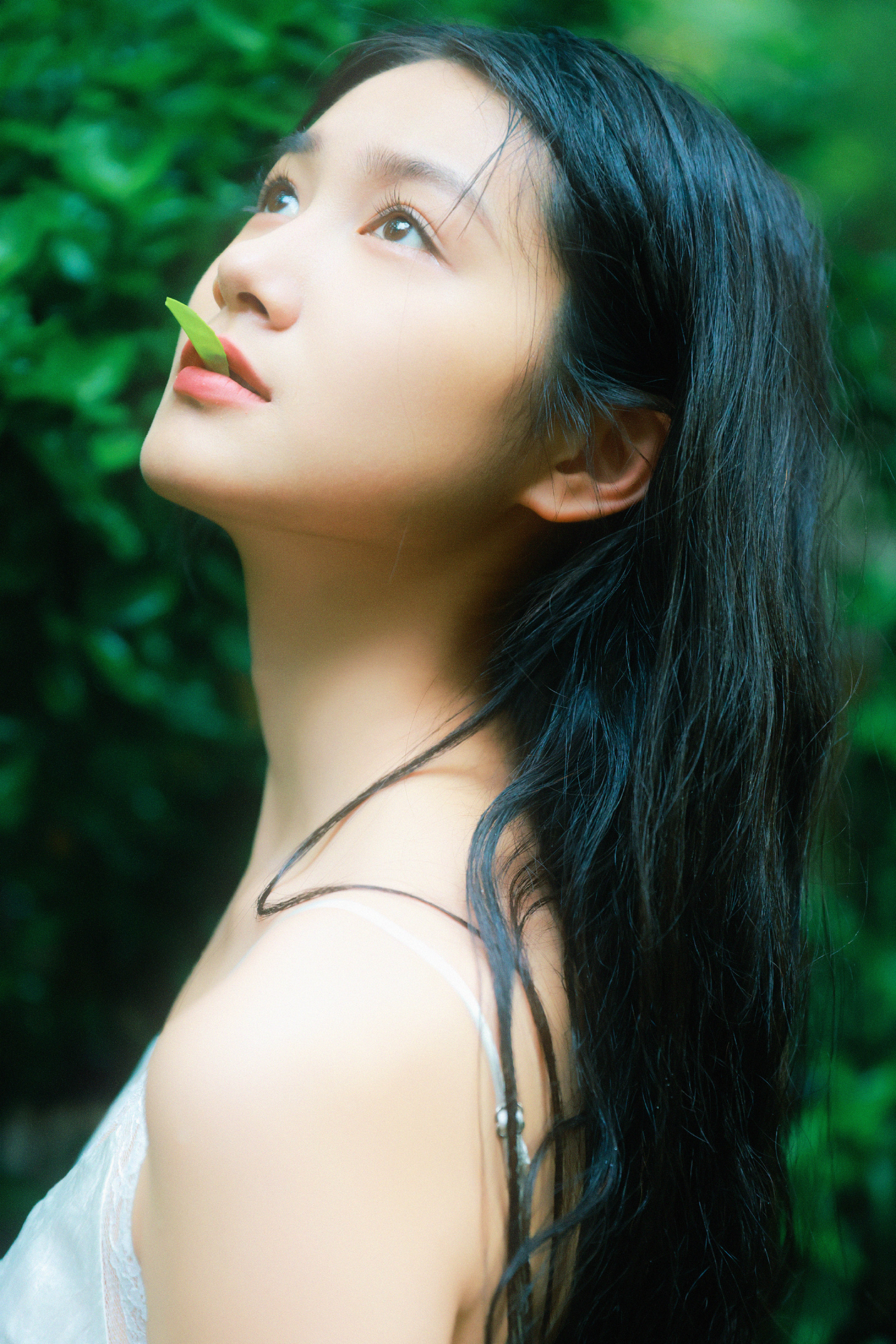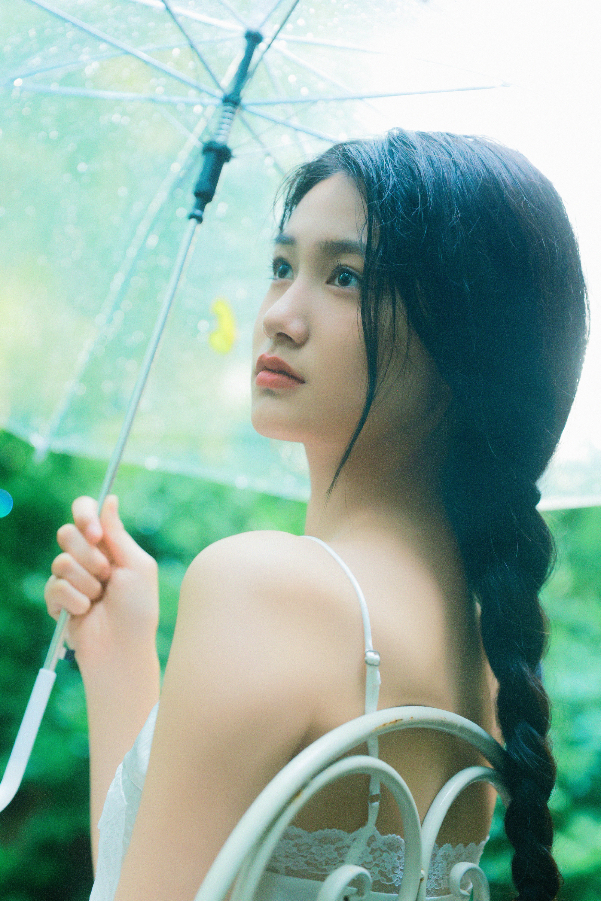 张籽沐告别盛夏写真上线,麻花辫吊带白裙,绿植林间的小仙女