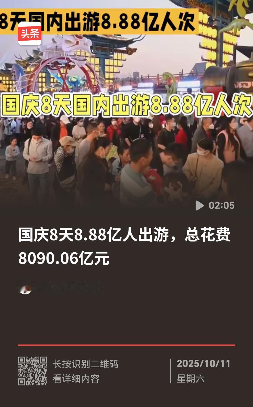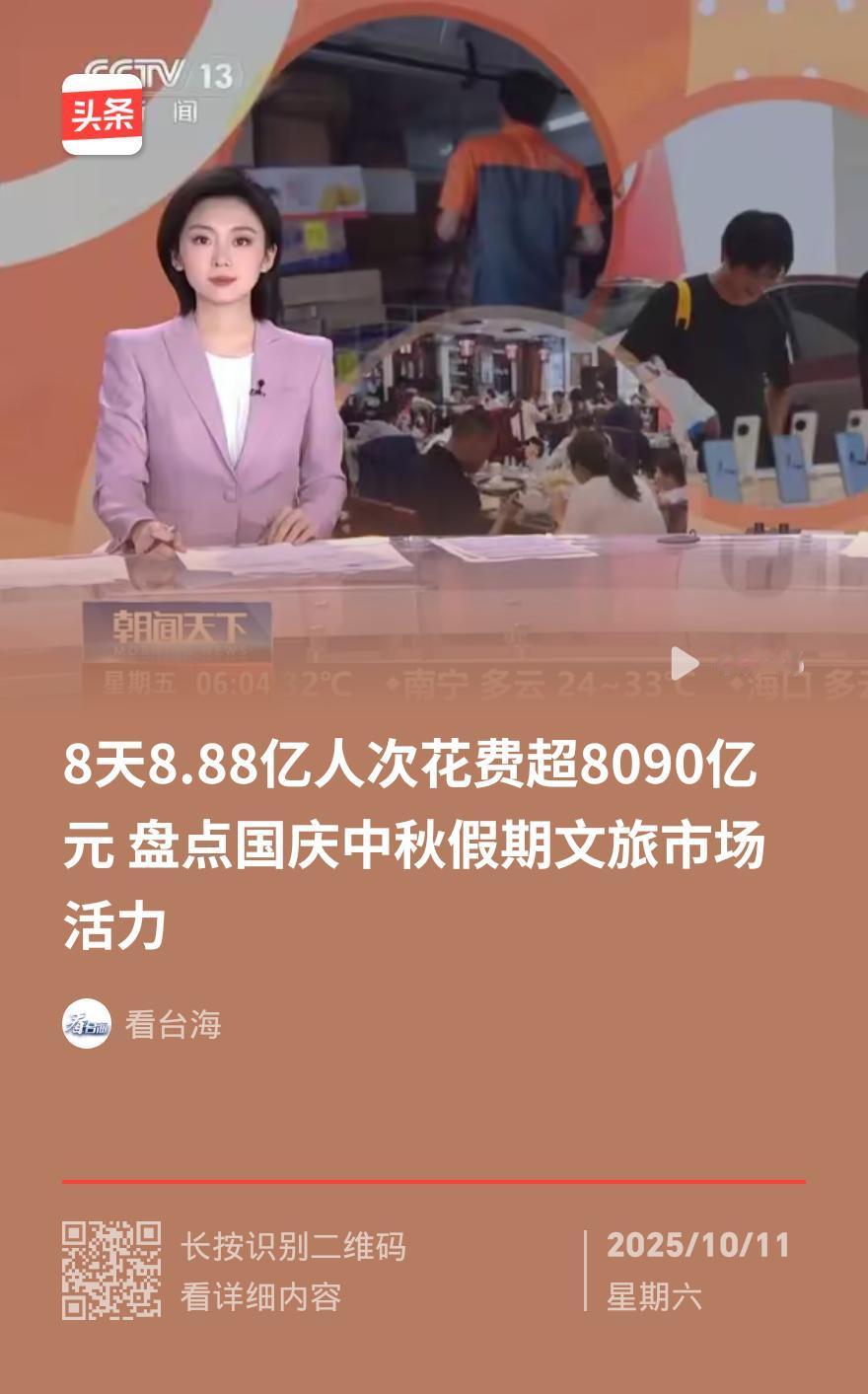 8天狂花8090亿!国庆消费藏3大“财富密码”,年轻人帐篷露营把钱花明白 国庆中秋8天假,中国人直接交出“狂花8090.06亿”的消费成绩单,比去年多花1081.89亿,服务消费增速飙到7.6%,这波热潮里藏着让商家眼红的“财富密码”! 第一招是“场景魔法”,老地方玩出新花样。商场不再只卖货,塞进球馆、萌宠店变游乐场;景区更会整活,福建古田会议址用AR让游客“穿越”历史,延安搞红色剧本杀,18-35岁游客占比近半。连月饼都玩IP联名,苏州稻香村和《黑神话:悟空》合作款卖爆50万盒。 第二招是“链条魔法”,一张票串起吃喝玩乐。武汉网球赛周边搞市集,单日客流破3万;演唱会门票成“万能折扣券”,能换小吃、享酒店优惠,带动非赛事消费占比38%。这哪是花钱,分明是买“一站式快乐”。 第三招是“下沉魔法”,县域和露营成新风口。浙江海宁“观潮+皮影戏”、江苏东台“非遗+湿地”线路,让县域旅游订单涨51%;武汉年轻人干脆支起帐篷,日均花费才酒店1/5,还能看电影玩桌游,主打“低成本高情绪价值”。 数据飙涨的真相,是大家更愿为体验和情感买单。看懂这三招,才明白中国消费的活力藏在哪!国庆消费新趋势 国庆消费新趋势 十一假期消费
