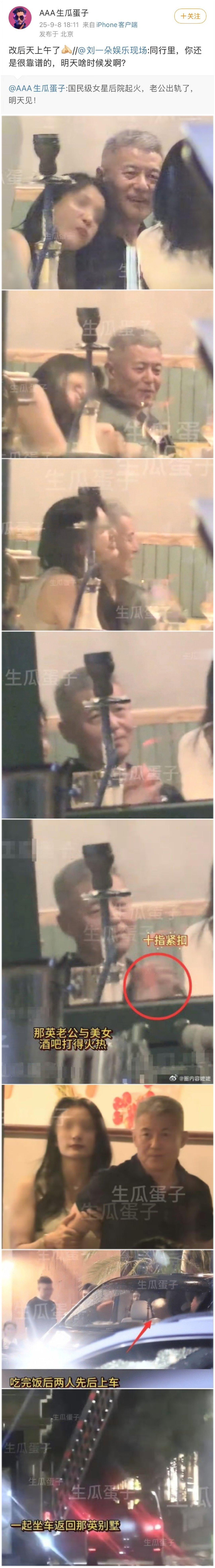 那英老公被爆与年轻女性回家 9月8日,一个账号为“AAA生瓜蛋子”发文称国民级
