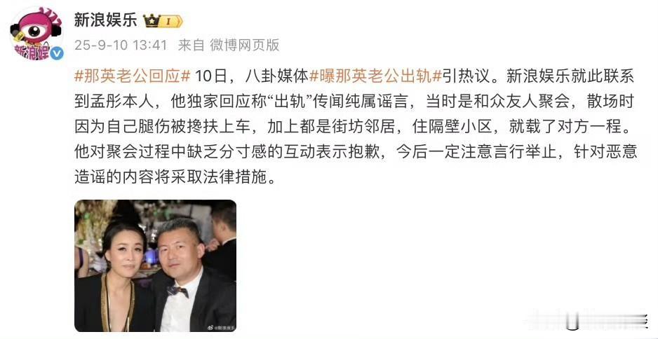 那英老公这个回应是认真的吗? 对于被传出轨一事,孟桐表示都是街坊邻居,住隔壁小