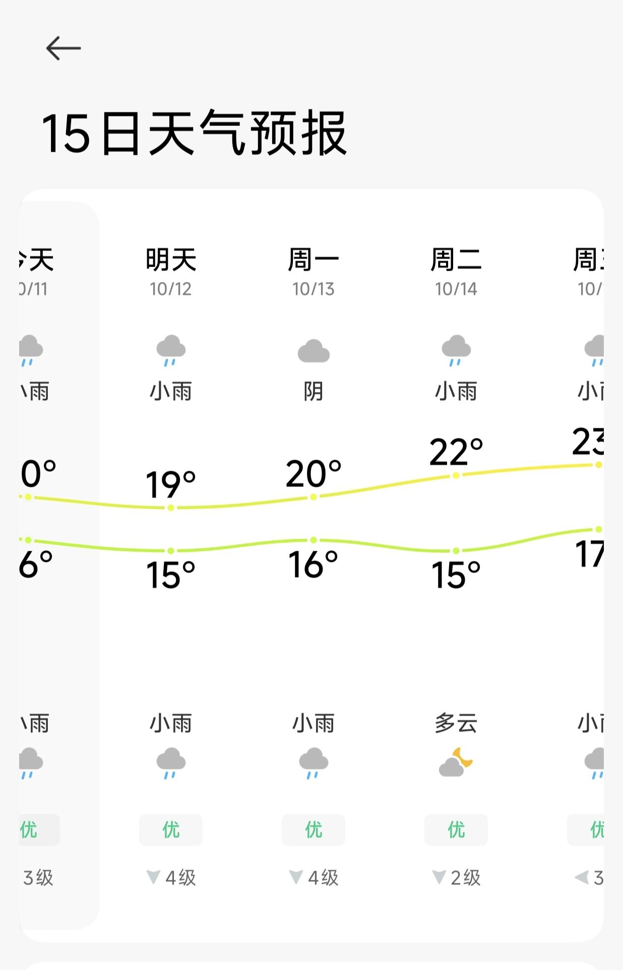烟台是不是进入梅雨季节了?这雨天天在下,国庆八天假,感情太阳也休假了,就一天出来露了个脸,问题是假期结束了牛马都回来上班了,太阳还在休假。 雨也不大,淅淅沥沥的,在家里看着感觉像是停了,但出去溜一圈回来一脸的水。 雨不大看似没什么灾害,但就像温水煮青蛙,雨连着下了这么多天,门楼水库今早泄洪,烟台部分景区也出现了山体滑坡。 看看15天的天气预报,不是阴就是雨,啥时候是个头。[捂脸]