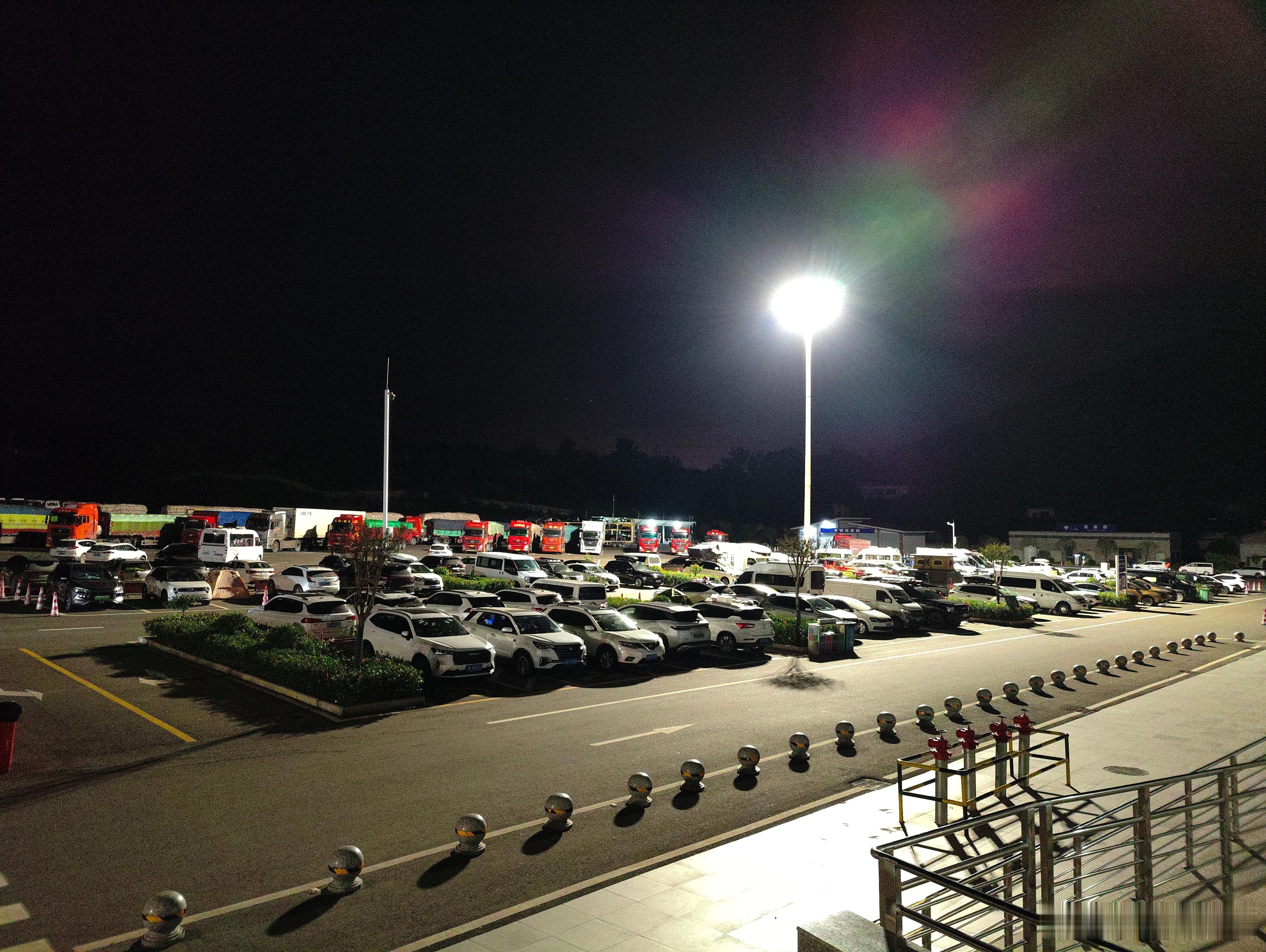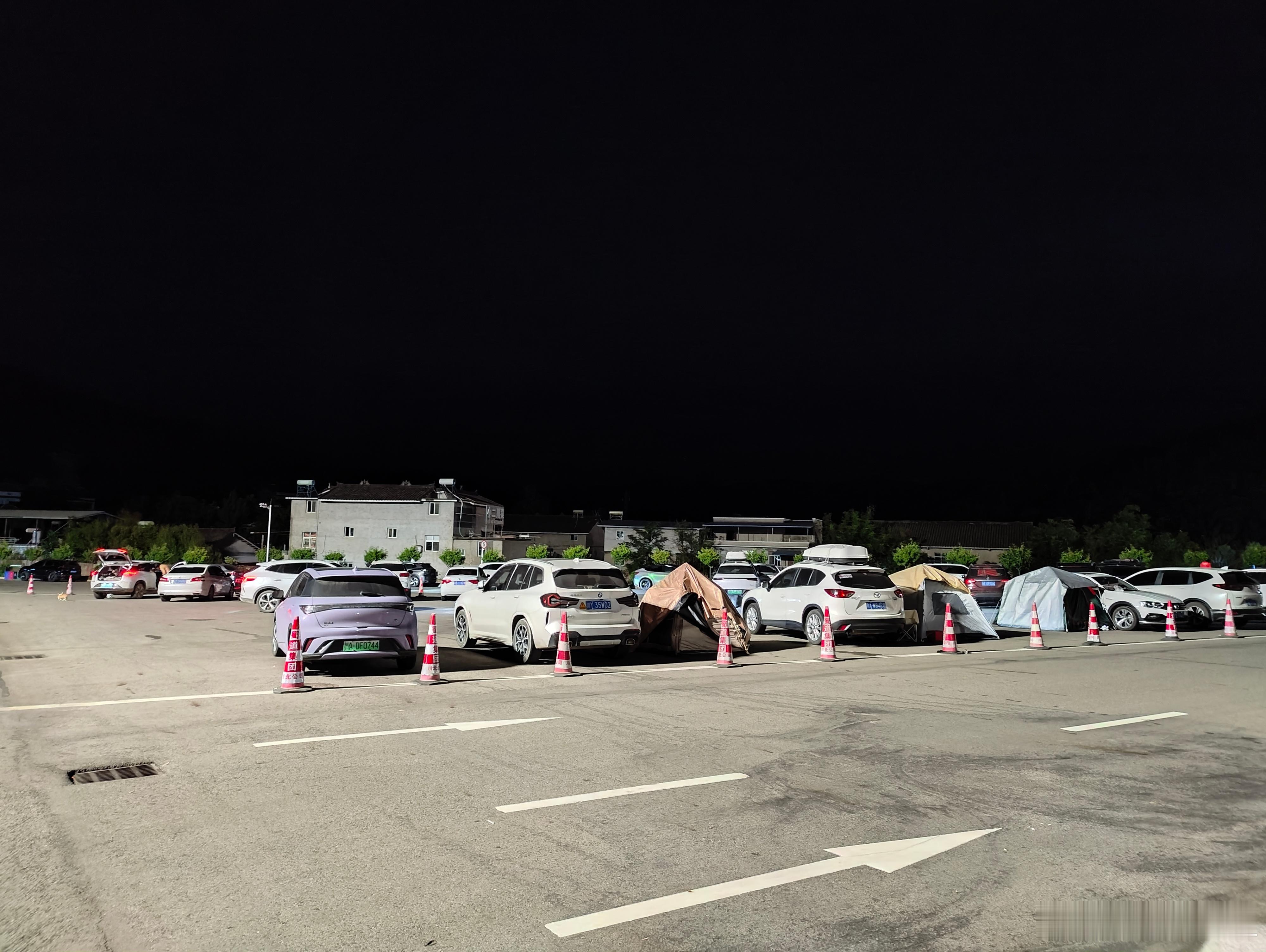 半夜的服务区人满为患,挤满了就地过夜的SUV和MPV,搭帐篷的不在少数[怒][怒][怒]