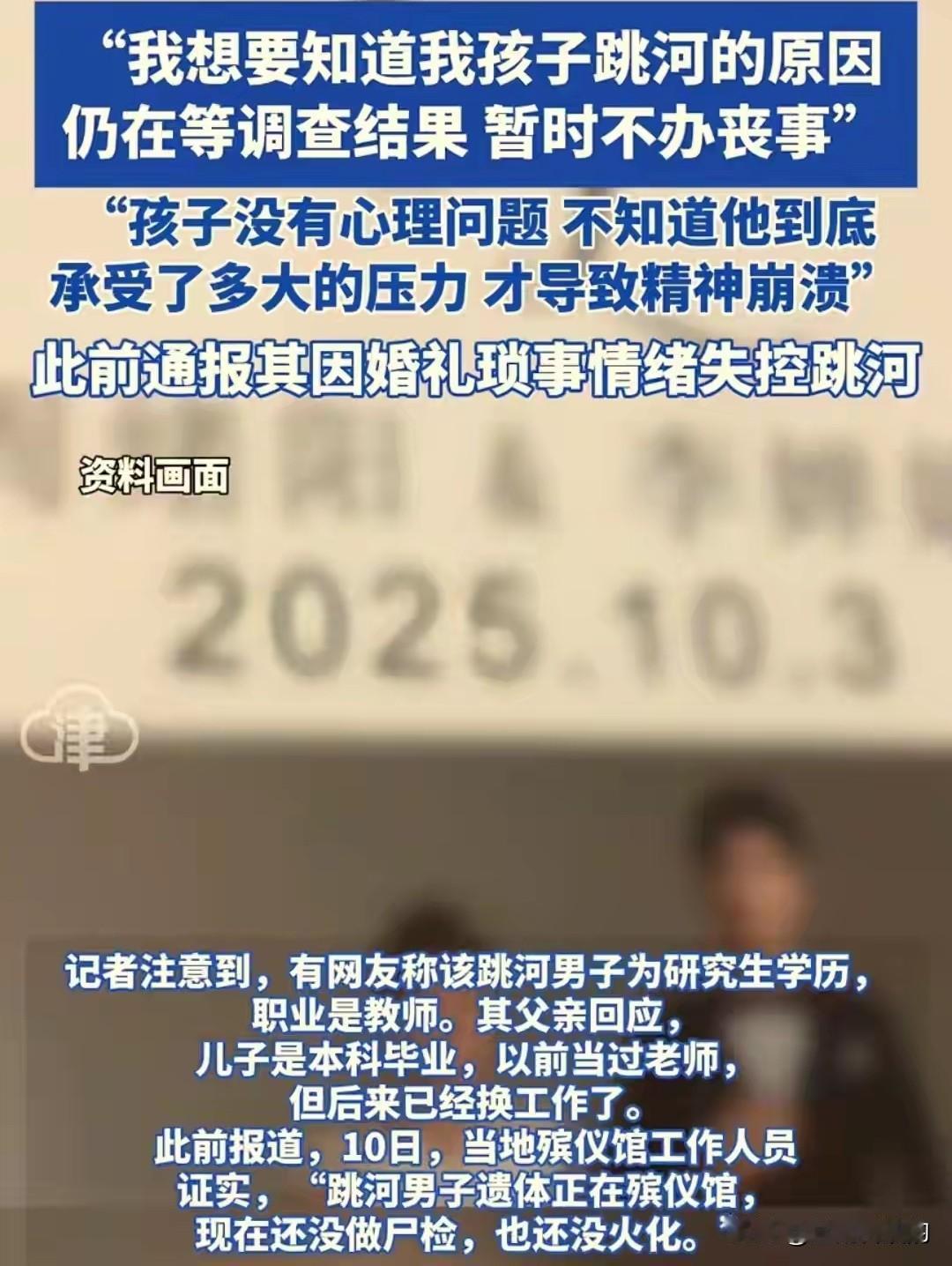 陕西旬阳29岁跳河新郎已离世,七天搜寻,等来的是一具冰冷的遗体,太痛心了!父亲说,家人等待调查结果,暂时不办丧事。 新郎因婚礼琐事情绪失控,这也许不是他一时冲动,而是他长久以来积压的绝望,在最后一刻决堤。如今他走了,留下无尽的悲伤,父母住院,亲戚痛哭! 两个原本应该相爱的人想要拼尽全力奔向的幸福,怎么就成了吞噬他的深渊?盼了一辈子“娶媳妇”的父母,等来的却是白发人送黑发人。喜事变成白事,这比任何事都残忍! 这件事也给我们敲响了警钟: 婚姻,不该是掏空一切的“单向透支”。彩礼、排场、面子……如果爱情在斤斤计较中消耗殆尽,那这场婚姻从一开始就输了。 愿每一场婚姻,都是因为双向奔赴的爱。每个想结婚的人,都能嫁给爱情!
