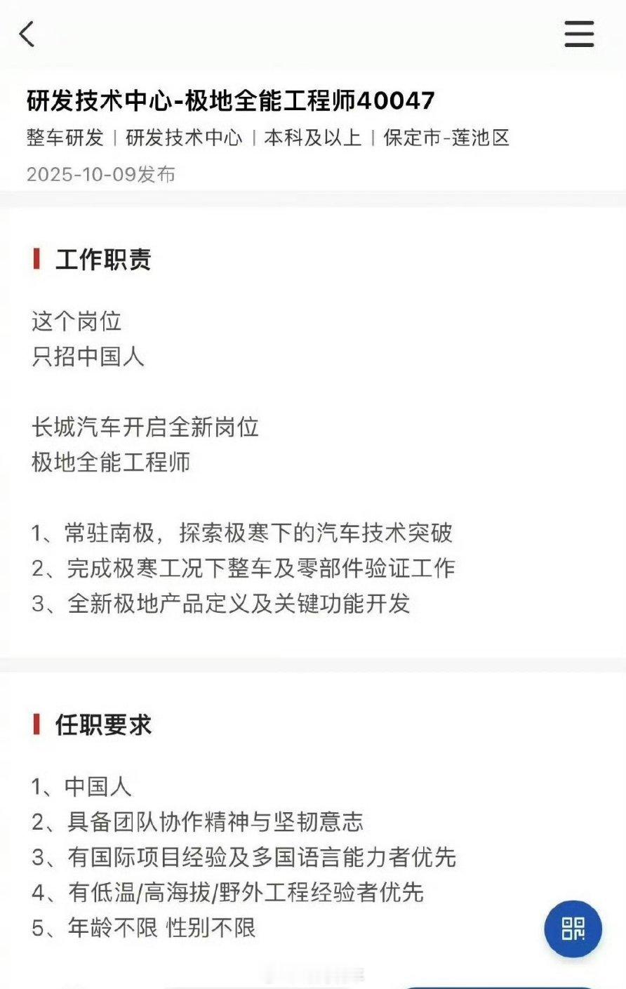 招聘极地全能工程师,工作地点常驻南极,是南极,不是黑龙江黑河漠河,不是内蒙古牙克石!