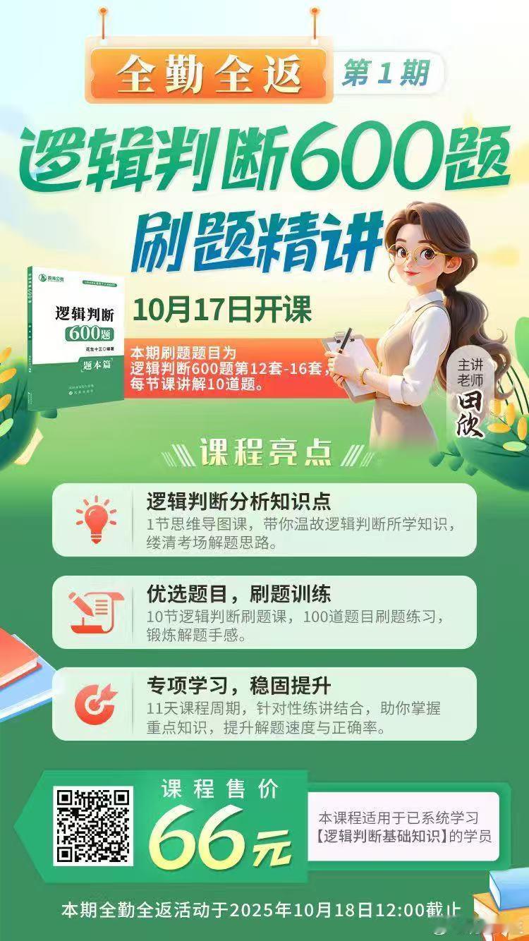逻辑判断600题刷题精讲已上线!10月17号开课,全勤全返模式13号下午1点,会