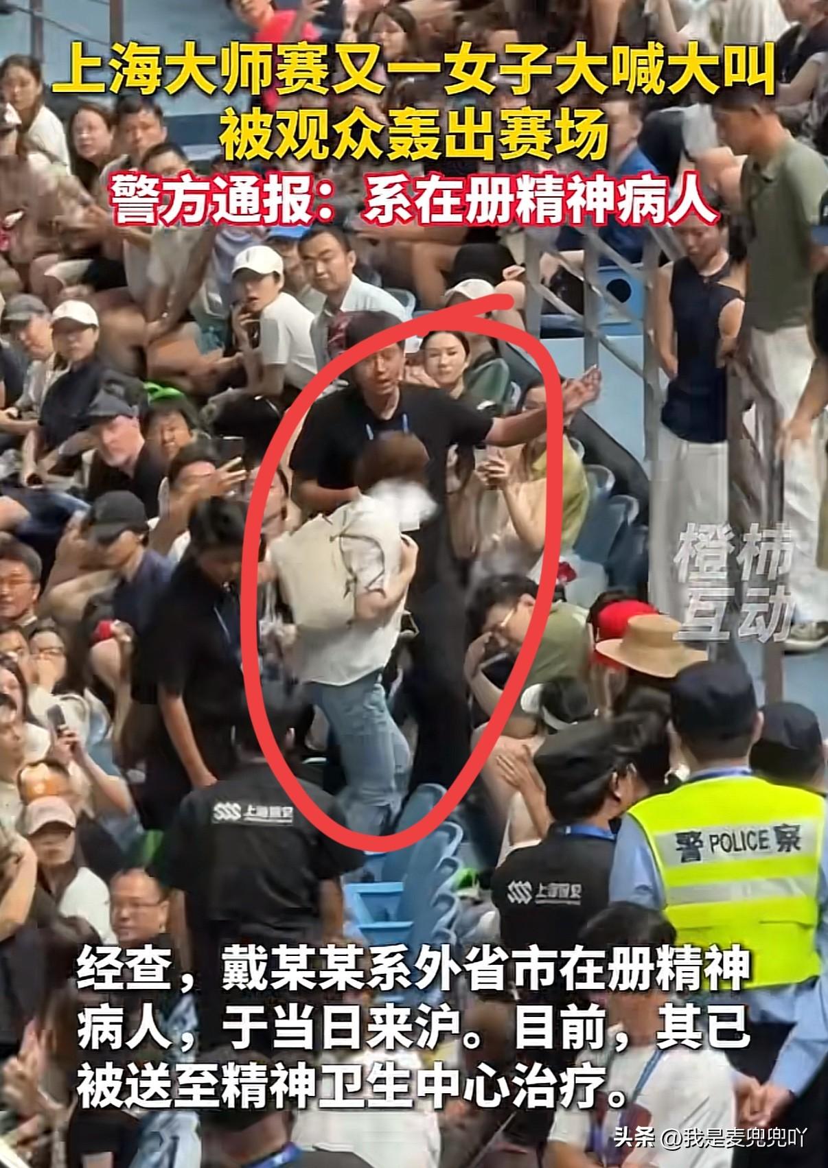 上海网球比赛又一名女子赛场惊声喊叫导致比赛中断 女子戴某,46岁。于2025年10月10号从外省抵达上海观看上海大师赛1/4决赛。梅德韦杰夫对阵德米纳尔 女子在比赛途中多次惊声尖叫面对周围观众的出声制止直接开口辱骂,然后自顾自的大喊“帅哥加油”“帅哥好棒”并在梅德韦杰夫每次接球时都发出尖叫声。导致不得不暂停比赛引发众怒,观众齐声大喊她听的懂中国话让她滚出去 后戴某被安保人员带离现场,警方对此事进行通报回应称,戴某为外省在册精神病人目前已经被送往精神病医院接受治疗 信源:齐鲁晚报