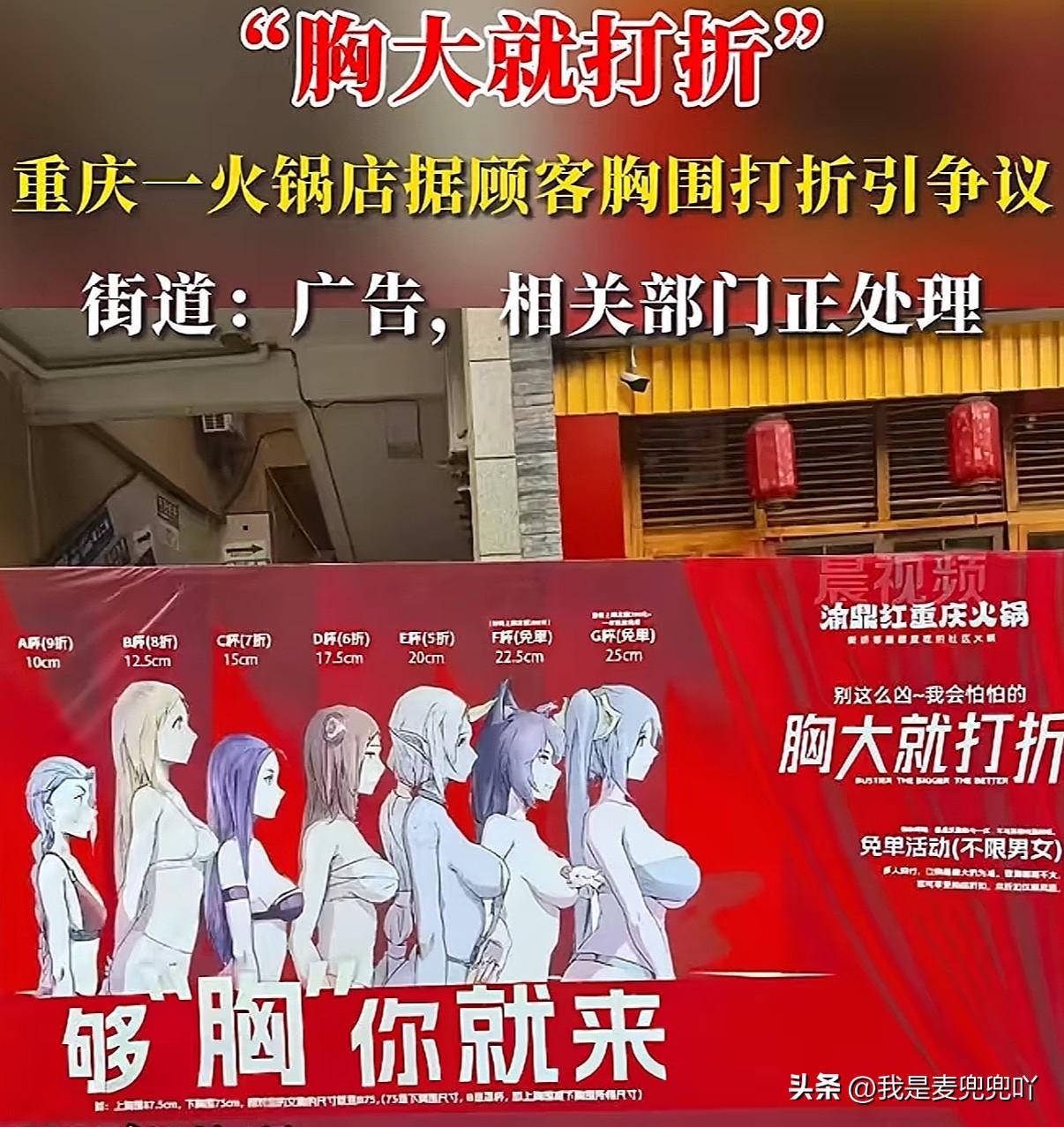 胸大就打折、罩杯越大折扣越大 重庆一火锅店为吸引顾客打出巨幅广告牌号称只要你胸够