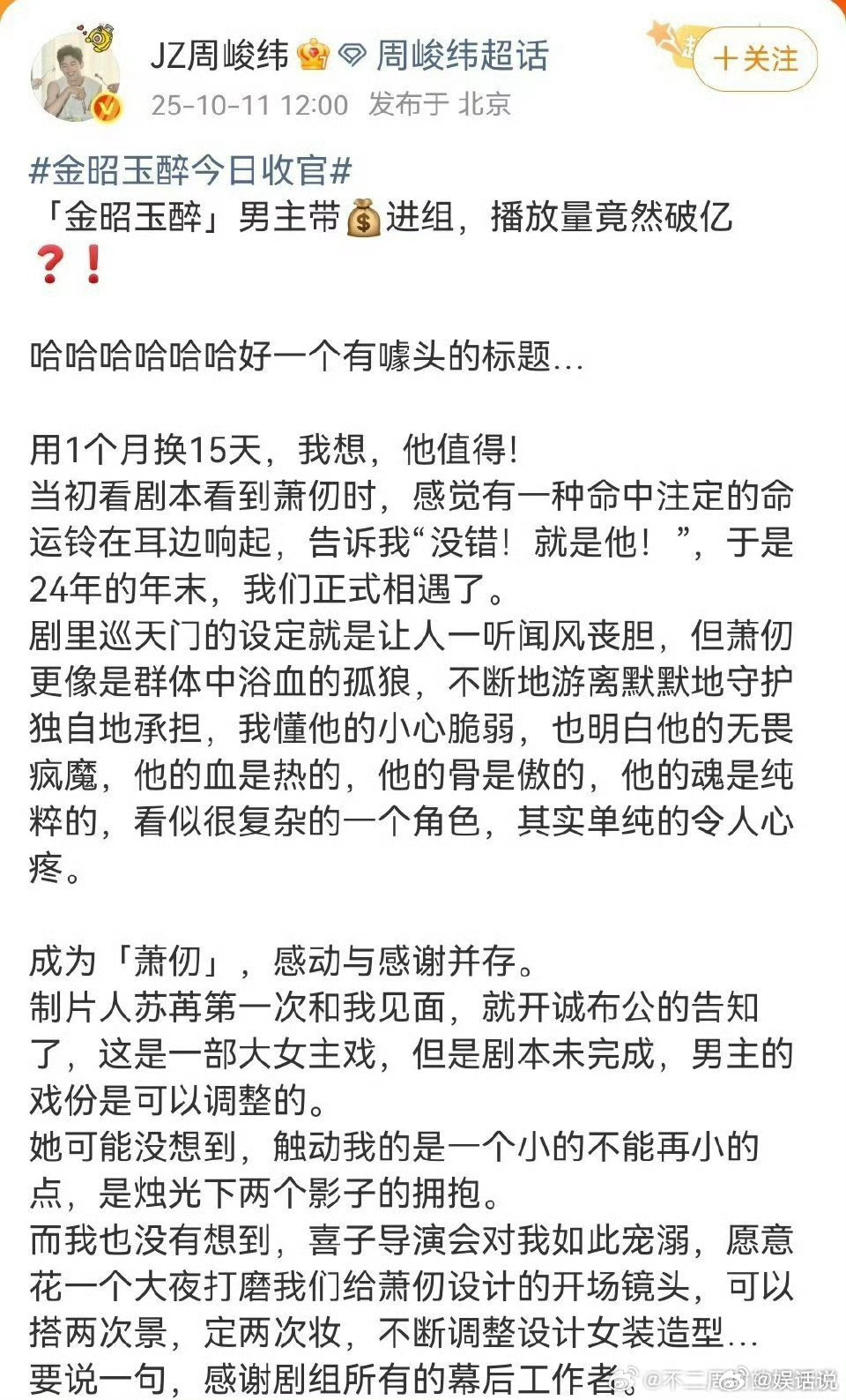 周峻纬长文回应带资进组面对争议周峻纬以作品说话!首次挑大梁当男主,剧播放量直接