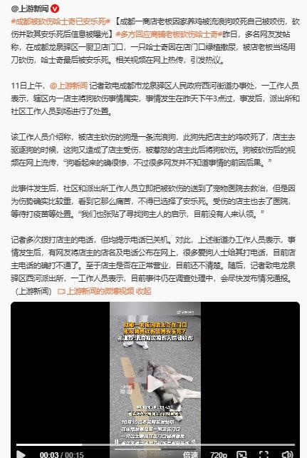 有些记者和哈士奇一样的狗,逮谁咬谁。在中国,安乐死是不被法律所允许的。看看@中国新闻网 和@上游新闻 使用的标题、报道的内容以及转评赞的区别。 @中国新闻网 官方通报流浪哈士奇咬人后被砍伤 2025年10月10日15时许,成都龙泉驿区西河街道翠竹路发生一起犬只伤人后,犬只被砍伤事件。经走访调查,现查明:当日14时40分,一无主中型犬只进入翠竹路一商铺内撕咬店主饲养的家禽,并攻击前来制止的店主何某某,致其左手手臂受伤,何某某遂使用刀具将犬只砍伤。目前,伤者何某某已前往医院就医,并注射狂犬疫苗。受伤犬只经社区工作人员及公安派出所立即送往宠物医院,医治无效后,由农业农村部门委托第三方专业机构无公害处理。 @上游新闻 成都被砍伤哈士奇已安乐死 【成都一商店老板因家养鸡被流浪狗咬死自己被咬伤,砍伤并致其安乐死后信息被曝光】多方回应商铺老板砍伤哈士奇 此事件发生后,社区和派出所工作人员立即把被砍伤的送到了宠物医院去救治,但是因为伤势确实比较重,看到它那么痛苦,不得已选择了安乐死。