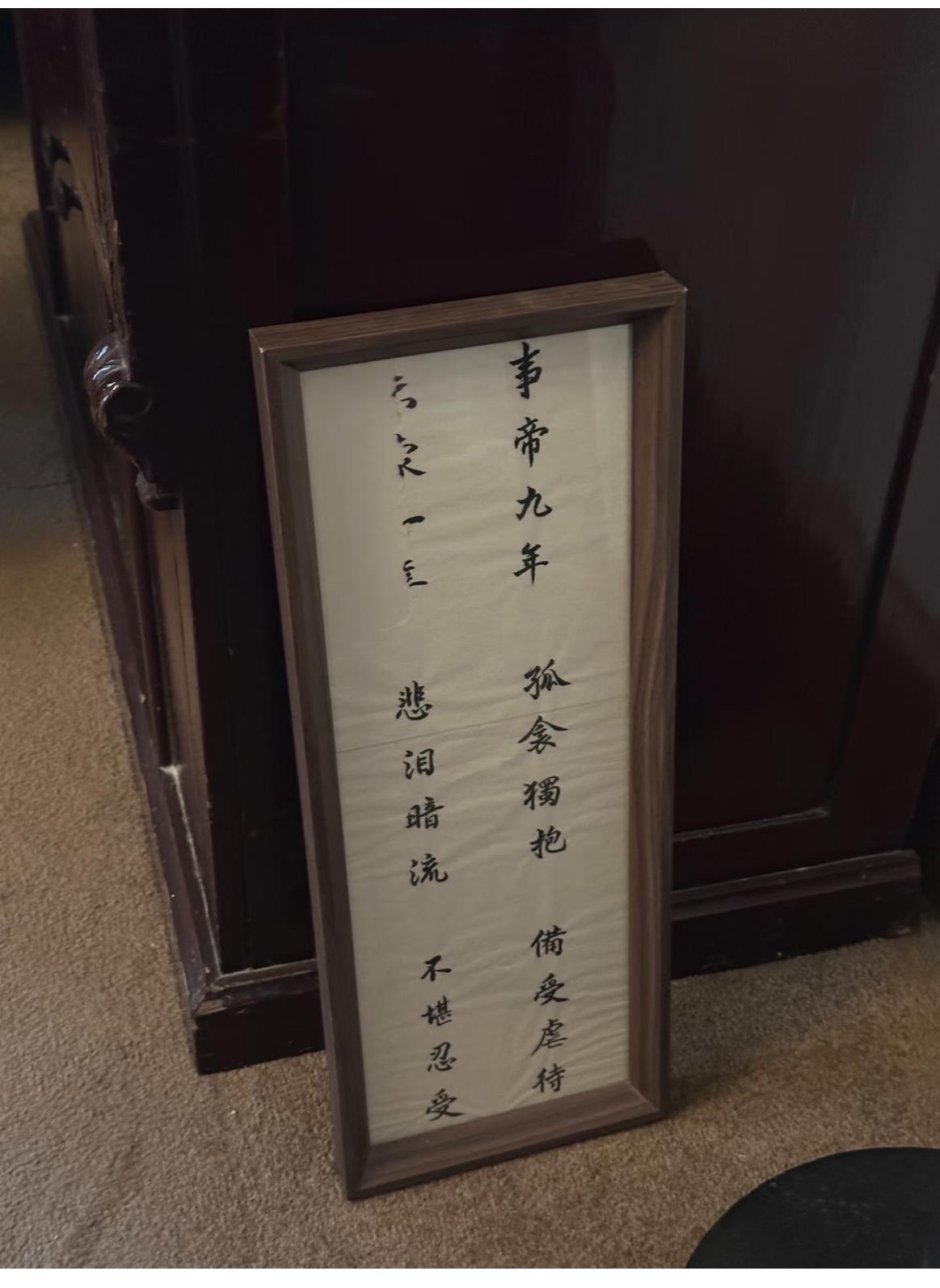 末代皇后婉容和末代皇妃文绣。婉容比文绣漂亮,再加上年龄和溥仪只差一岁,所以俩人常在一起,文绣备受冷落。 后来文绣跟溥仪离婚,她以前住过的伪皇宫居所里还留着她的一幅字:事帝九年,孤衾独抱,备受虐待,悲泪暗流,不堪忍受。 内容悲绝,触目惊心。 勇敢的文绣离婚后去找了份小学教员的工作养活自己,后来怕被打扰改名换姓隐居,缝补糊纸盒打零工维持生计,再后来嫁了一个普通人靠出租平板车生活。44岁心脏病去世,临死前才泄露自己的前朝皇妃身份。 而婉容跟随溥仪,被囚禁,吸鸦片,最终一张破席裹尸扔在乱葬岗。