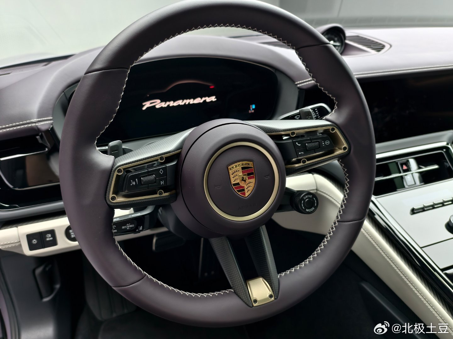 2、内饰:全新专属内饰颜色(树莓紫/卡拉哈里/黑色三色调光面真皮内饰,还有两款价值86300元的“致纯真皮”可以免费选择)、碳纤维内饰组件(价值27400元)、内饰组件、座椅头枕上的保时捷盾徽(价值7800元)、照明的哑光碳纤维车门槛护板(价值20200元)