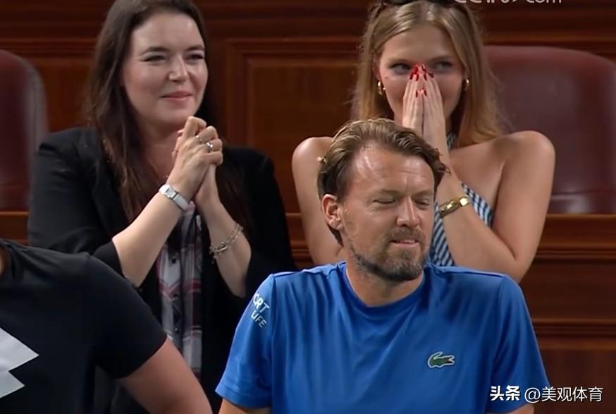 瓦朗坦·瓦舍罗战胜德约科维奇,晋级上海大师赛决赛,让费德勒继续保有1972年以来最年长大师赛决赛选手的纪录! 图为瓦朗坦·瓦舍罗的教练和女友在拿下赛点之后,不敢谢谢自己的眼睛。
