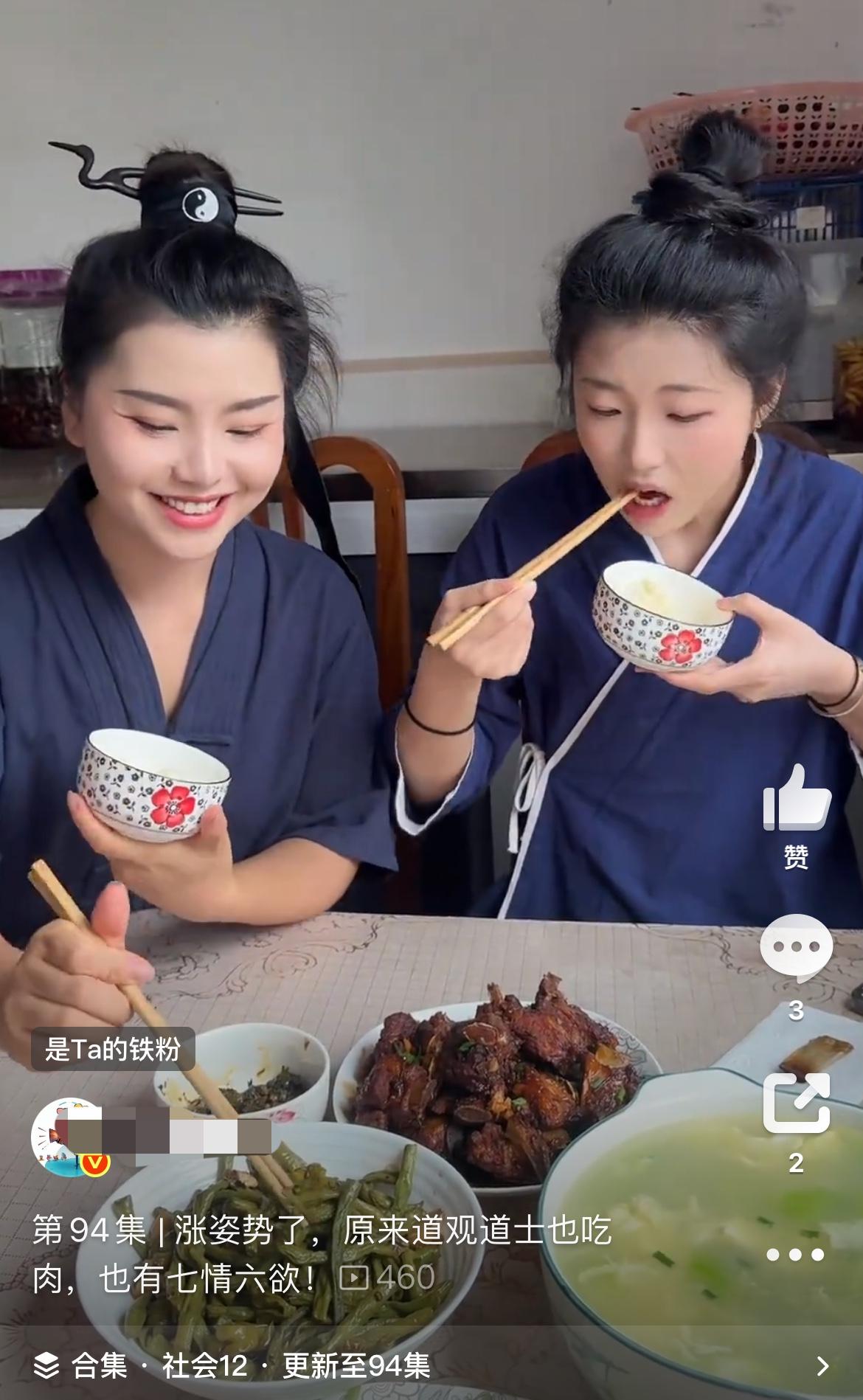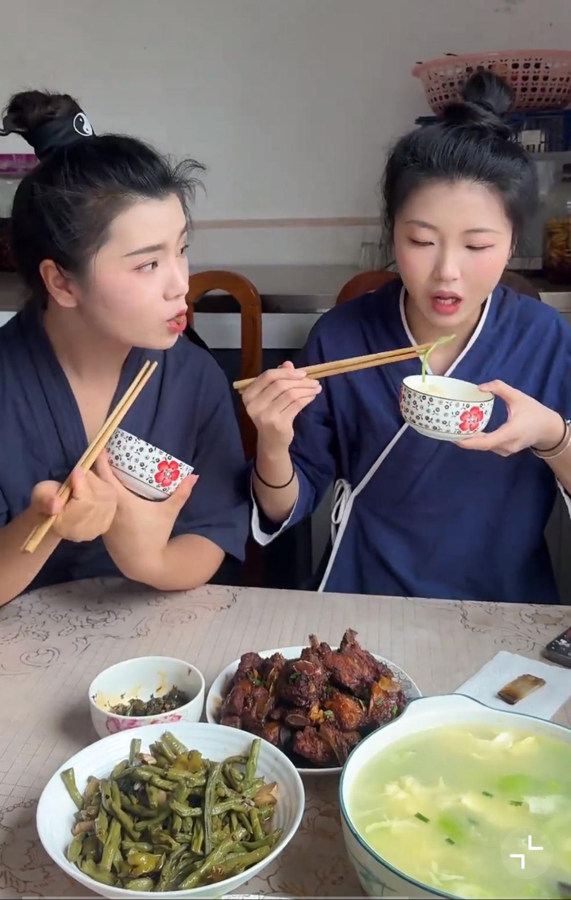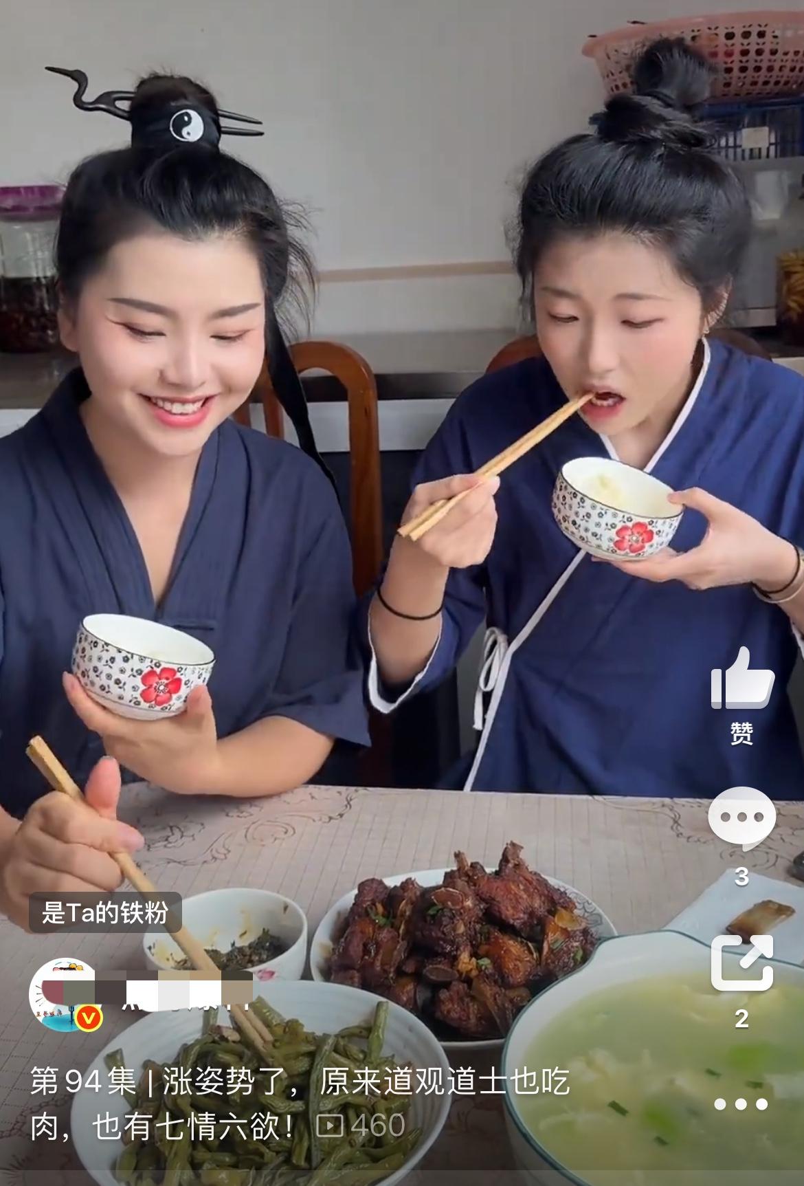 两个道友媛伙食不错啊,看穿衣打扮像道观里的,可是涂脂抹粉妆容却如此精致,是修行还是镀金?再看伙食,真不赖啊,豆角、红薯藤、丝瓜汤、红烧排骨,家常菜不简单,这比很多农家人的伙食要好得多,就是不知道他们那里还缺人吗?骑行媛 道友考核