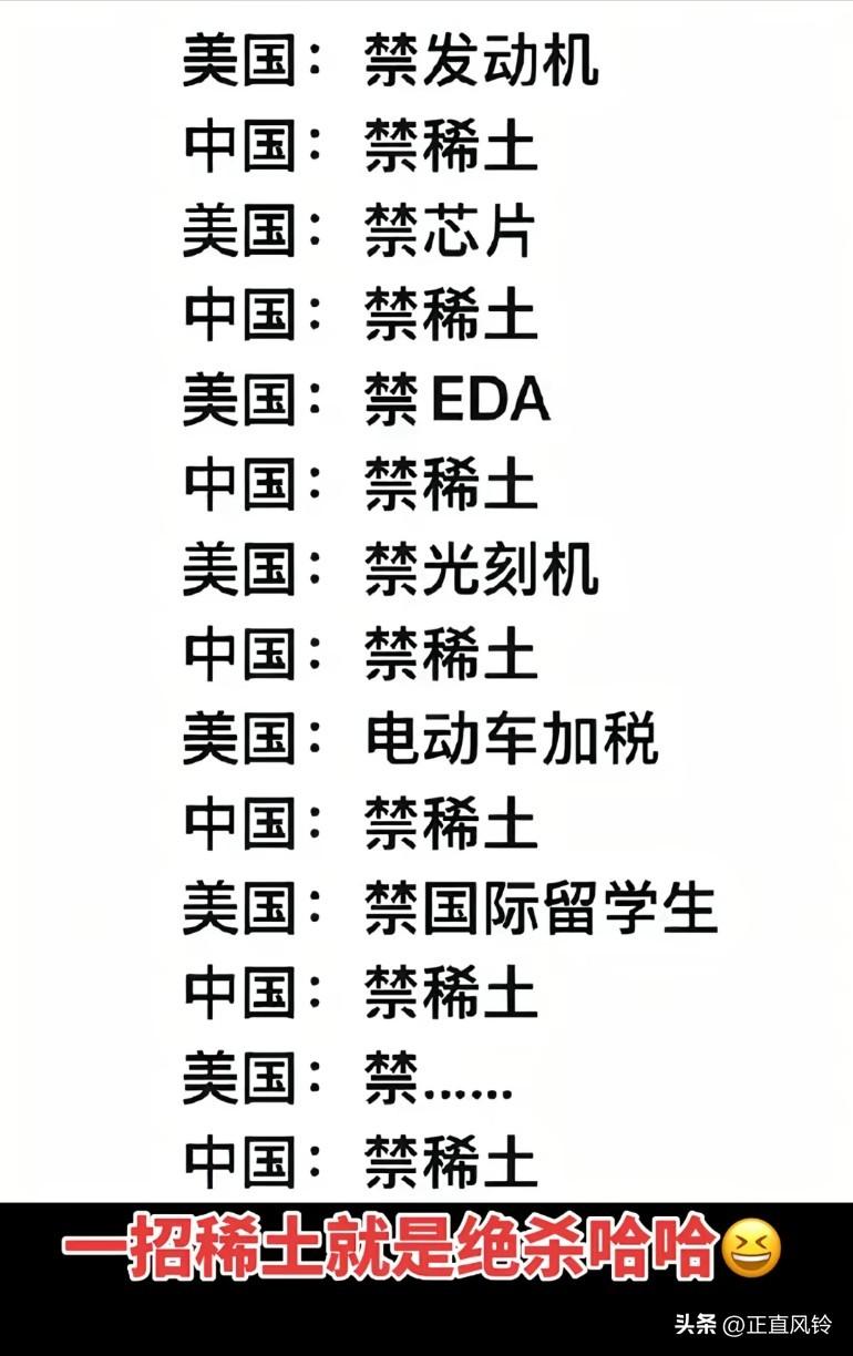 又开始了没完了么,稀土真的是把黄毛的血脉给压制住了,一招稀土就是绝杀哈哈 美:我还没说呢……中:禁稀土 世界稀土看中国,中国稀土看我们大江西,世界上还没有能出来个平替东大的国家,就提炼这个需要的电力,有哪几个国家行?和工业有关的都离不开,不过欧美也是有提炼技术的,只是成本太高 技术现在也是我们最好,最关键是稀土是工业的副产品,消化不了主产品,光用副产品能亏得尿血。成本高,工业污染大,这两点美国佬攻克不了
