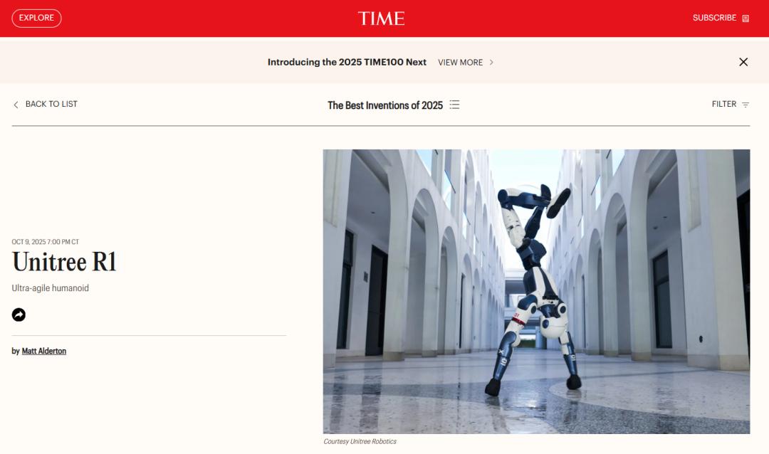 《时代》公布2025年度300大发明榜,4家中国企业上榜:宇树、Dee