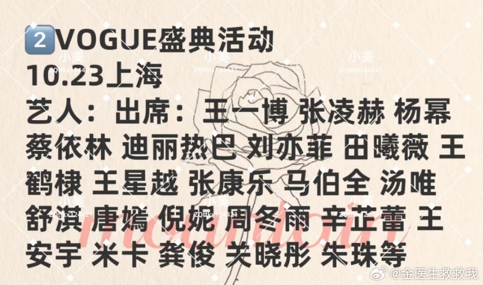 vogue23号的盛典已经开始发微博预热了[喵喵]共有52位嘉宾艺人出席,网传名