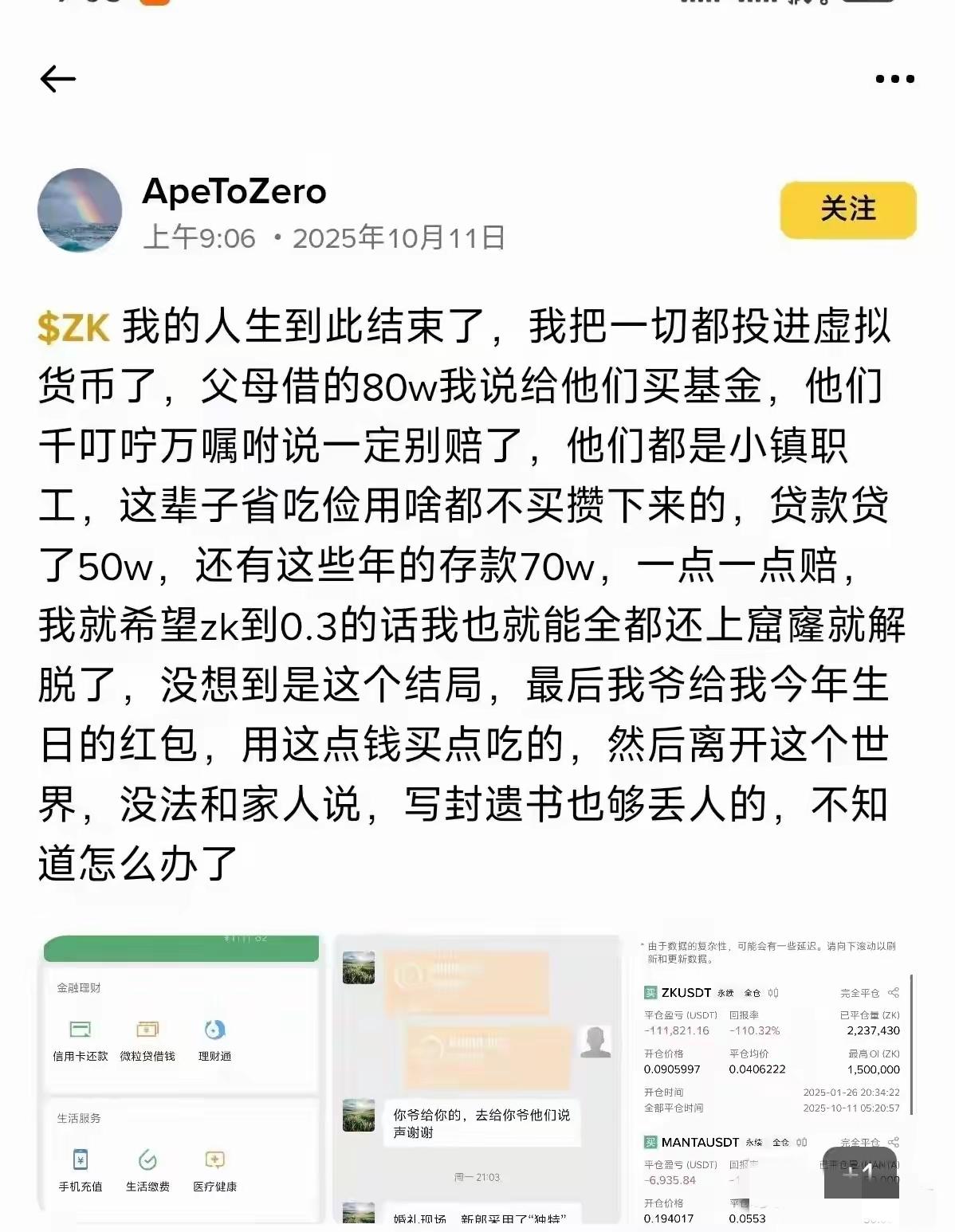 真惨!把父母省吃俭用的80万养老钱投虚拟币,一夜就归零了!这哪是投资,分明是把家底往火坑里扔。 有人觉得虚拟币是暴富捷径,却忘了它根本没有法定货币的信用背书,价格全靠市场瞎炒,说崩就崩。之前就有14万人一起爆仓,几百亿市值说没就没,本质就是高杠杆放大的赌局,有的杠杆甚至125倍,跌1%就血本无归。 最坑的是这事儿不受法律保护,亏了没人管,连说理的地方都没有。那些喊着“低风险高回报”的,全是陷阱。 这哪是亏了钱,是戳破了“靠投机翻身”的幻想。财富从来没有捷径,稳扎稳打才是真。你觉得这种“暴富梦”真能信吗?身边有人踩过类似的坑吗?