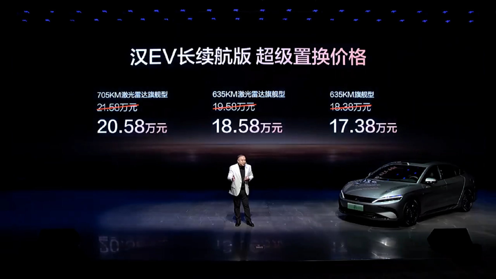 ●汉 EV长续航版超级置换补贴后售价15.98万-20.58万元(