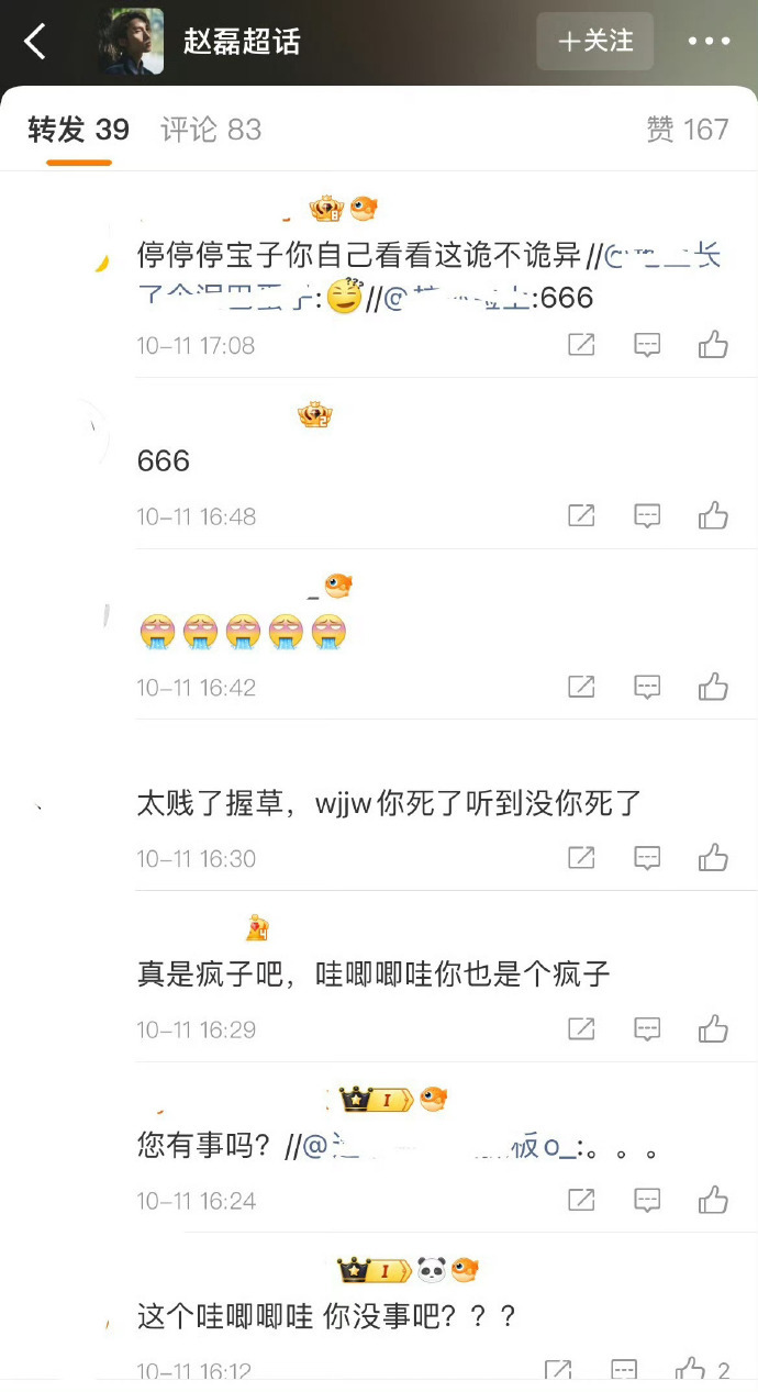 哇唧唧哇在赵磊超话发恋综被审判 哇唧唧哇官方账号进入赵磊个人超话发布其恋爱综艺宣传,此举引发粉丝强烈不满。网友辣评:“公司到艺人全都这么恨粉?”