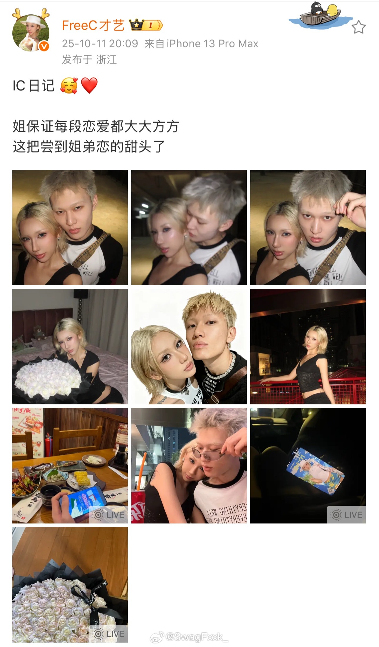FreeC晒男友再秀恩爱:姐保证每段恋爱都大大方方,这把尝到姐弟恋的甜头了!