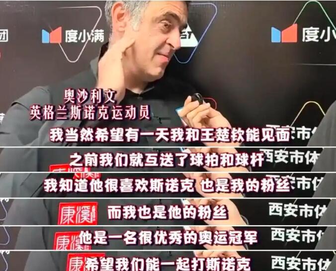 斯诺克传奇奥沙利文为何对乒乓球选手王楚钦情有独钟?两人如何在不同领域建立起深厚的友谊? 斯诺克传奇选手奥沙利文近期在接受采访时透露,他希望能够在未来与乒乓球奥运冠军王楚钦见面并共同体验斯诺克的乐趣。奥沙利文表示:“我当然希望能有一天和王楚钦见面,也可以发消息打视频。”两人之间的友谊始于互赠球拍和球杆,奥沙利文还提到王楚钦是他的粉丝,而他也十分欣赏王楚钦的表现。王楚钦曾向奥沙利文赠送了一支亲笔签名的乒乓球拍,奥沙利文则回赠了一只签名的斯诺克球杆。这段跨界的友谊不仅展现了两位顶尖运动员间的互相尊重,也引发了体育迷们对于不同领域运动员间交流与合作的广泛讨论。