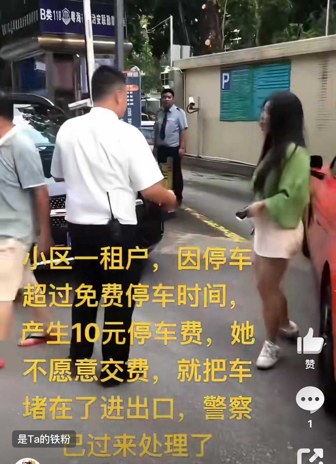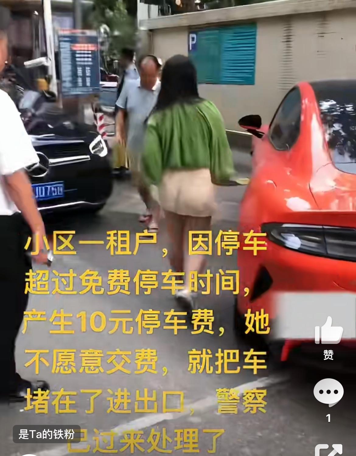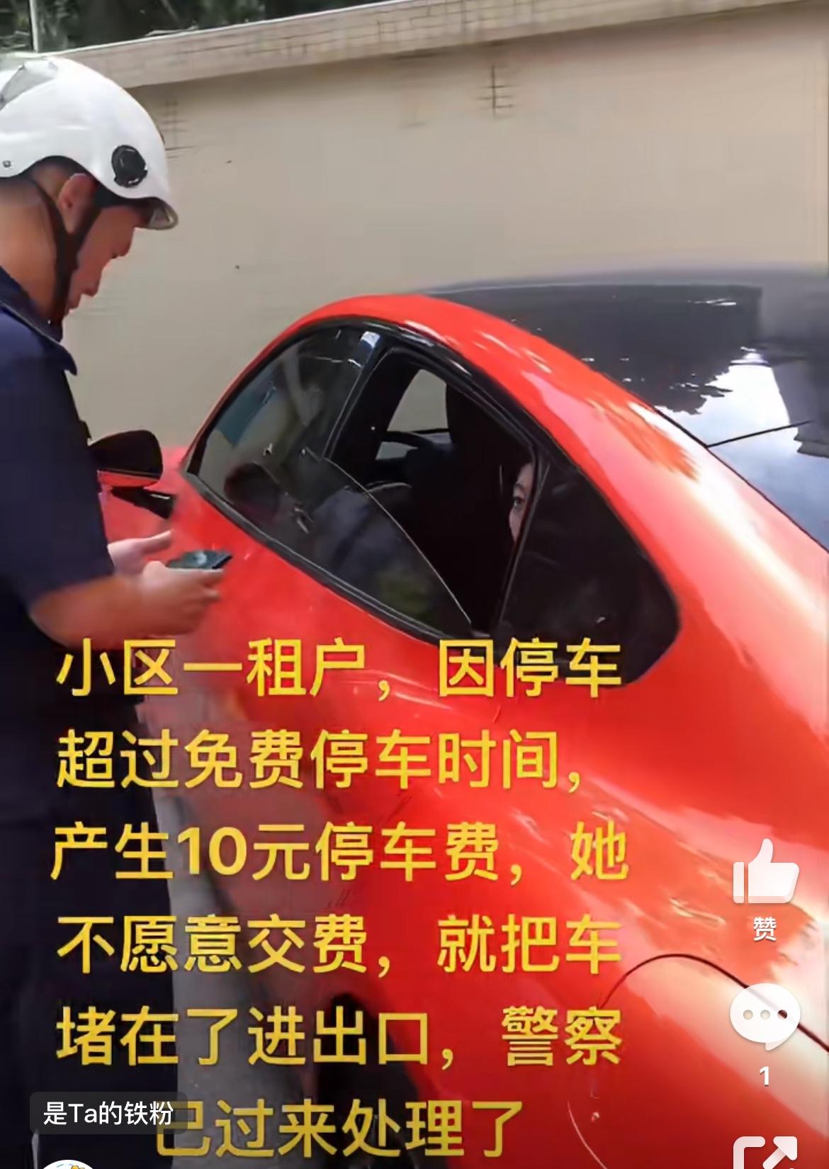 某米女司机因为停车超时,为10元停车费堵了小区出口。这位身材姣好的女子是小区的租客,小区有规定停车免费时间,一不小心女滴停车超时了,出去小区需要支付10元的停车费,女滴就不干了,找各种理由说不是想有意超的,希望网开一面。物业公事公办,不给她开这个口子,于是就有了车堵住收费口,物业无奈报警。路边停车位收费 堵路女司机 4万多元停车费