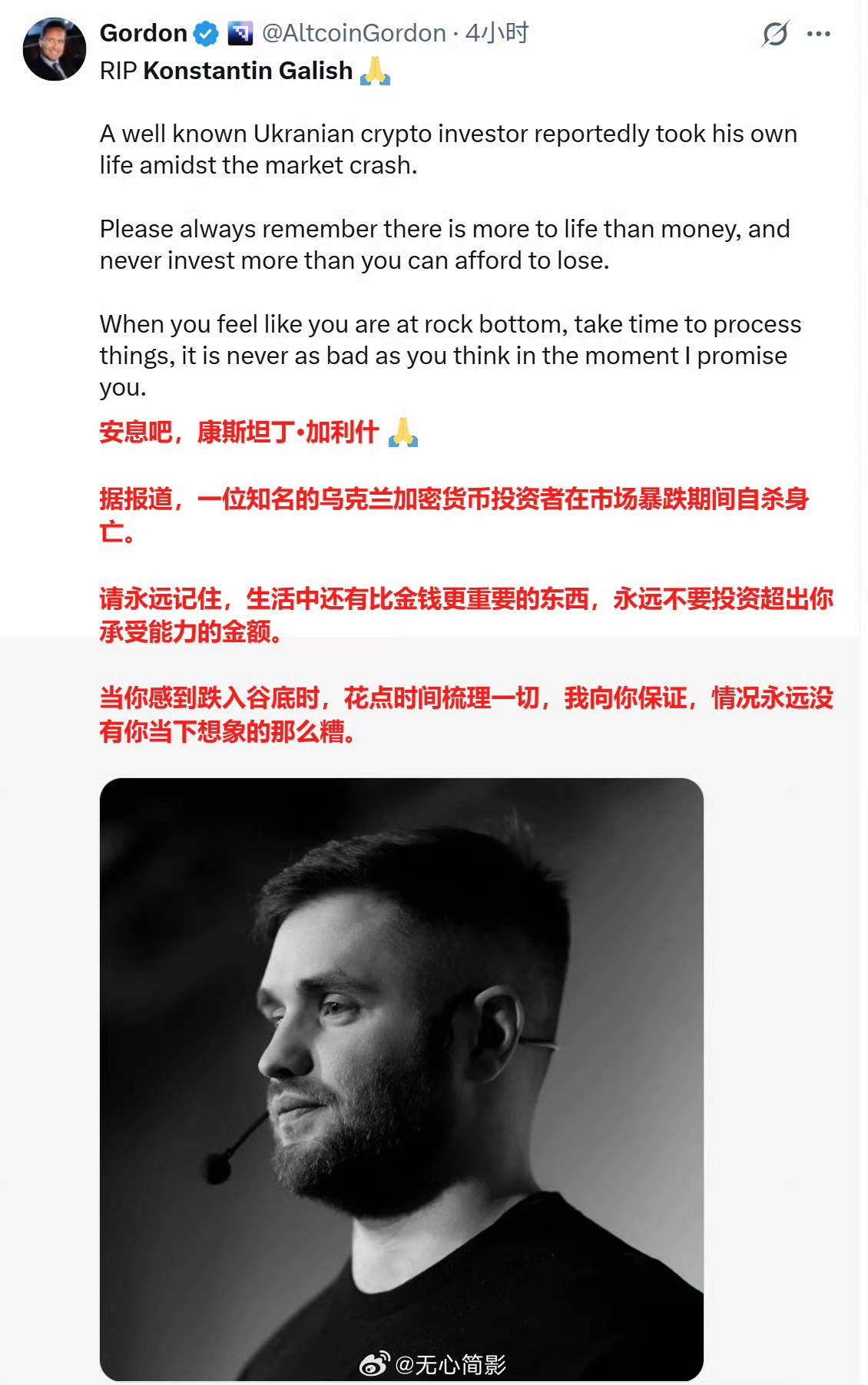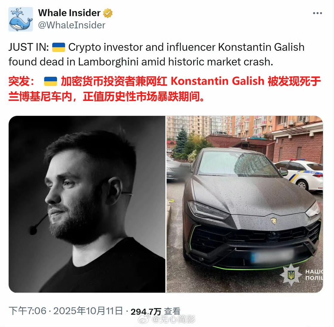 真惨!有人炒虚拟币,血亏,直接在自己的兰博基尼车内开枪自杀了。 刚在微博刷到一个交易者,这人是乌克兰的一个网红加密货币投资者,叫做Konstantin Galish,他手底下管理了约6500万美元的资金,其中还有1000万美金是属于乌克兰的军事情报机构。 本来他做投资还是非常谨慎的,但是这一次突然地市场崩盘,使得他再谨慎的投资方式都没用了,麾下资金在一夜之间几乎全部亏损光了,血本无归。 如果这些钱都是他自己的也就罢了,但他管理的其实是其他人的钱,其中还有乌克兰的军事情报机构,现在这些钱都亏光了,Konstantin Galish自然也就无路可走。