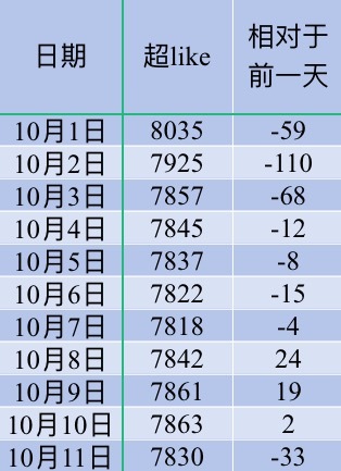 昨天的超喜欢稍微的下降了喔,发帖人数继续上升,今天的超喜欢底数也上升了