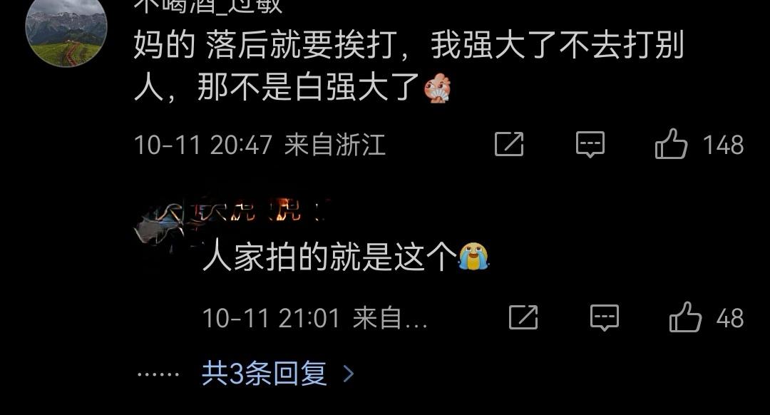 这位大V的理解还是太肤浅。根本没有任何小国因为“落后就要挨打”而怕中国强大。恰恰相反,他们怕的是落后却没挨打。 落后就要挨打,打掉腐朽反动的旧势力,就能进步了。但是落后却没挨打,反动势力就继续为非作歹,让他们惶恐不已,不断地讨打。