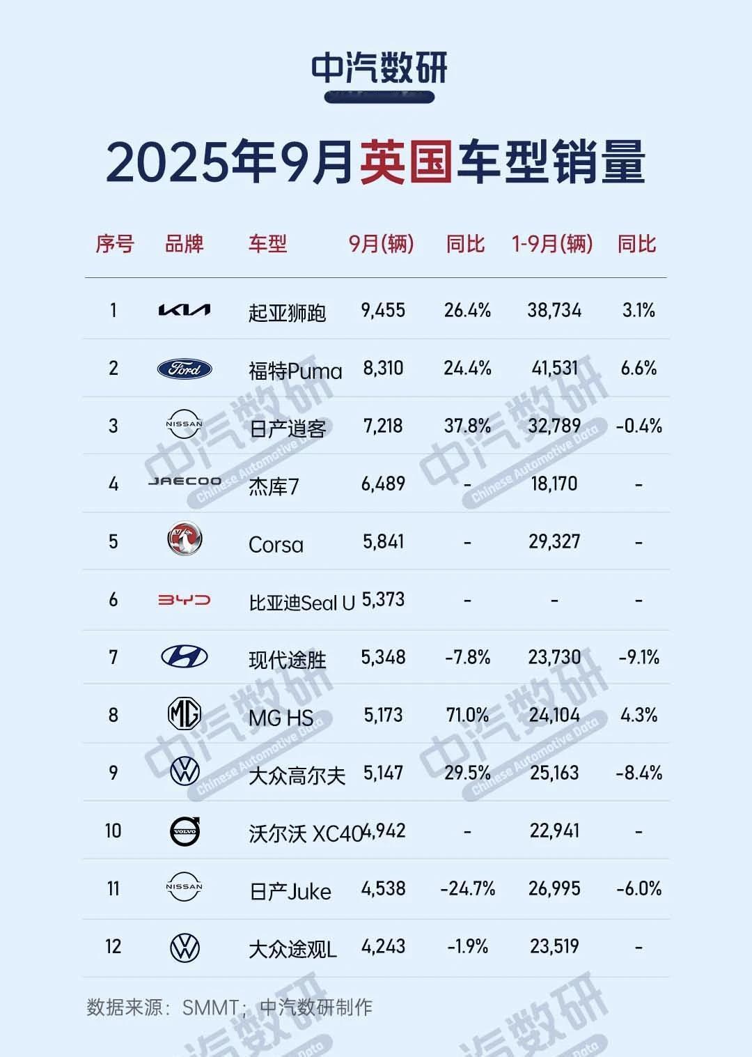 9月英国销量排行榜,大众领衔,比亚迪大涨 大众2.5万辆排在首位,其中高尔夫排在车型销量榜的第9位。高尔夫车型,大家应该比较熟悉了,在国内市场热销的时候,记得销量是不是已经逼近了2万辆。高尔夫,还出了一款纯电,认识一个北京的朋友,买了一辆,200多公里的纯电续航,相当满意,二手车价格也不错。 名爵1.5万辆,同比大增,上汽算是把名爵盘活了。 奇瑞的杰库超过了6千辆。 比亚迪1.1万辆,同比算是暴涨,估计进入前十不远了,你觉得在2025年有机会?【来自懂车帝车友圈】