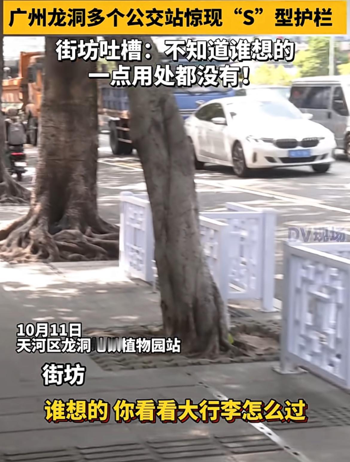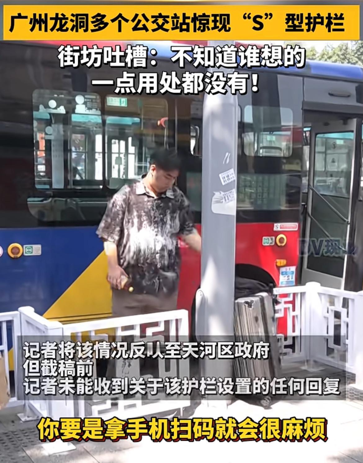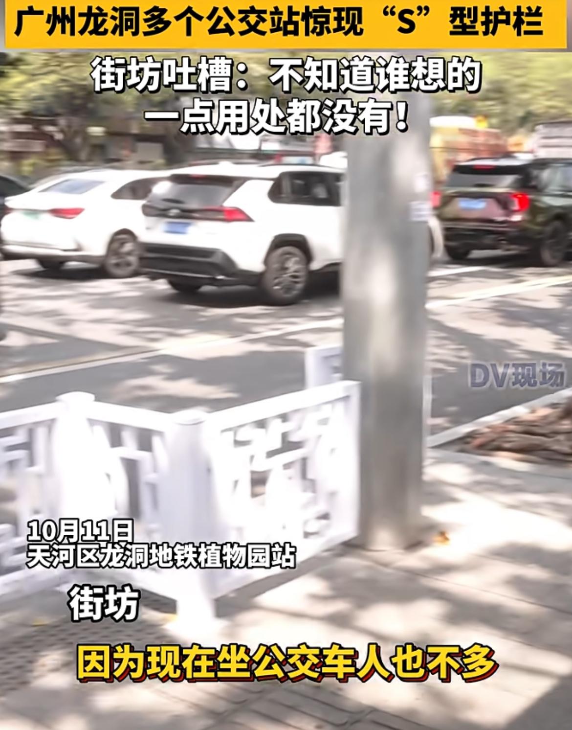 广州龙洞多个公交站惊现S型护栏,遭市面吐槽,不知道有啥用。说它是为了安全,可是护