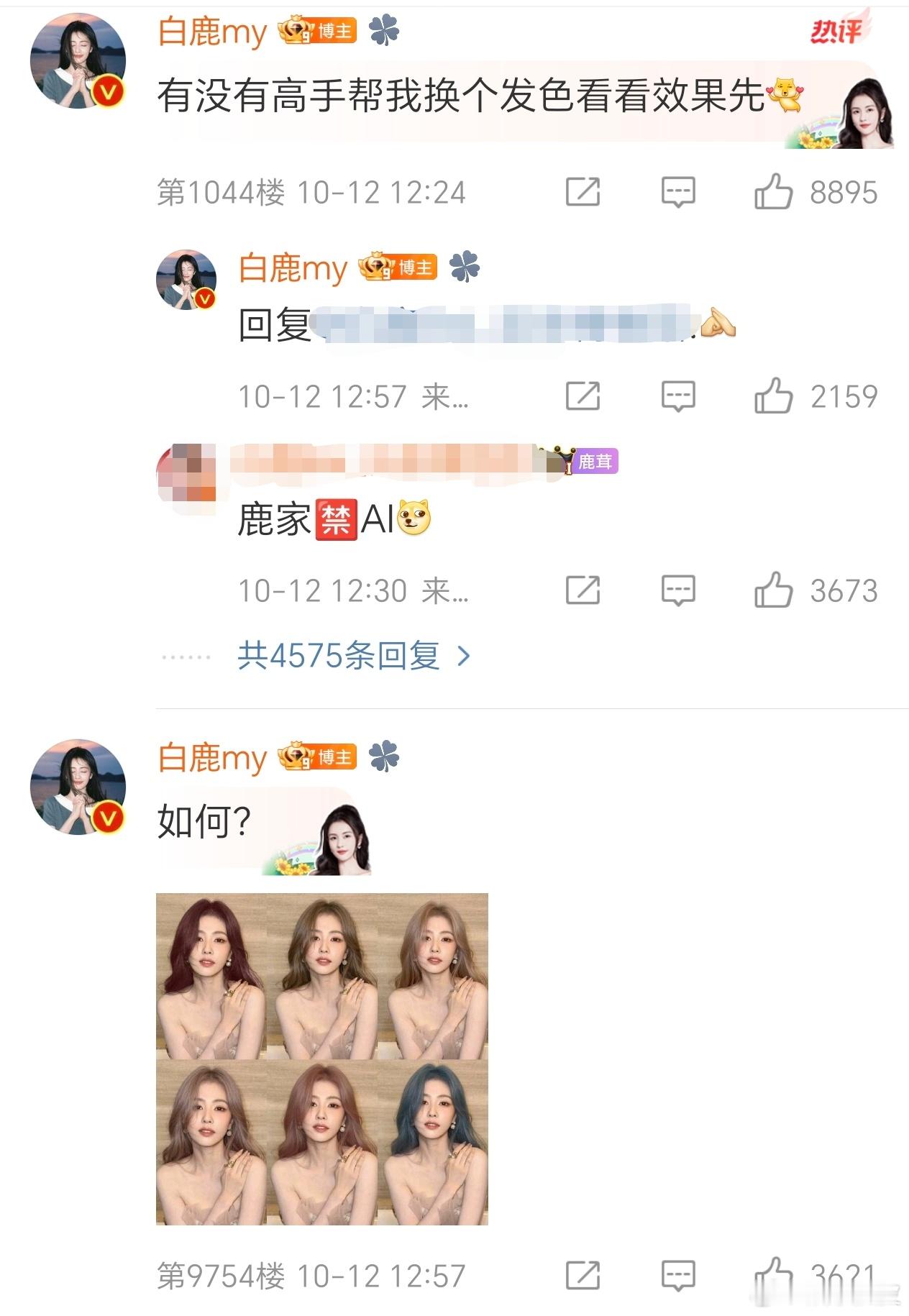 白鹿想染头发白鹿想染头发了,在线让粉丝宝贝们推荐颜色😃美女表现力那么好,怎么