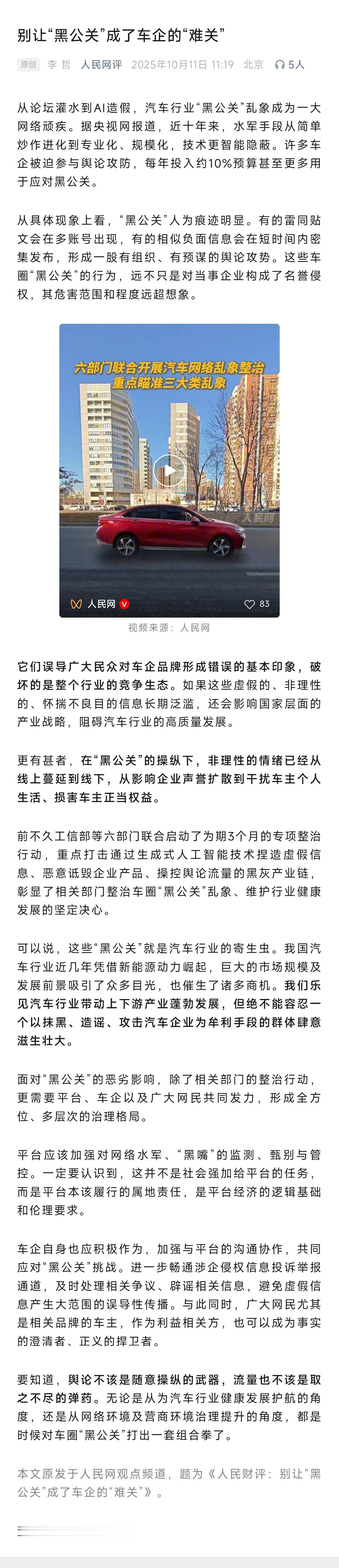 你们发现没?昨天人民网点名《别让“黑公关”成了车企的“难关”》,紧接着晚上,就出了一张所谓“矩阵图”。