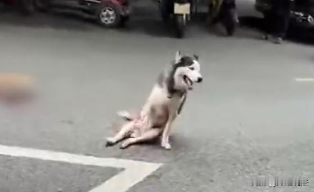 成都,在闹市区,从一家店铺里突然窜出来一只流浪狗,从品种来看,应该是一只哈士奇。
