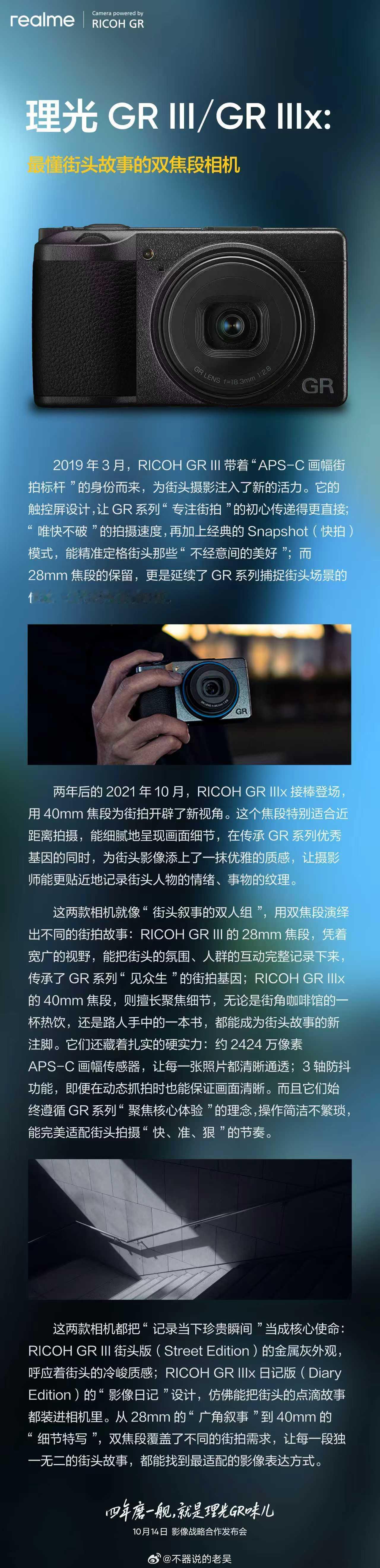 果然现在留给国产手机的相机品牌已经不多了,这次真我携手理光GR将和真我GT8Pro搞个联名,整了一个理光GR味儿,并带来28mm与40mm理光GR灵魂焦段,具体效果怎么样?就等着14号见分晓吧~