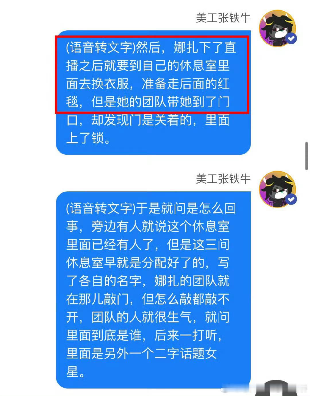 爆料方一边说只给大咖用一边又说是娜扎自己的,前后矛盾,同场的二字女星真有点无妄之灾了