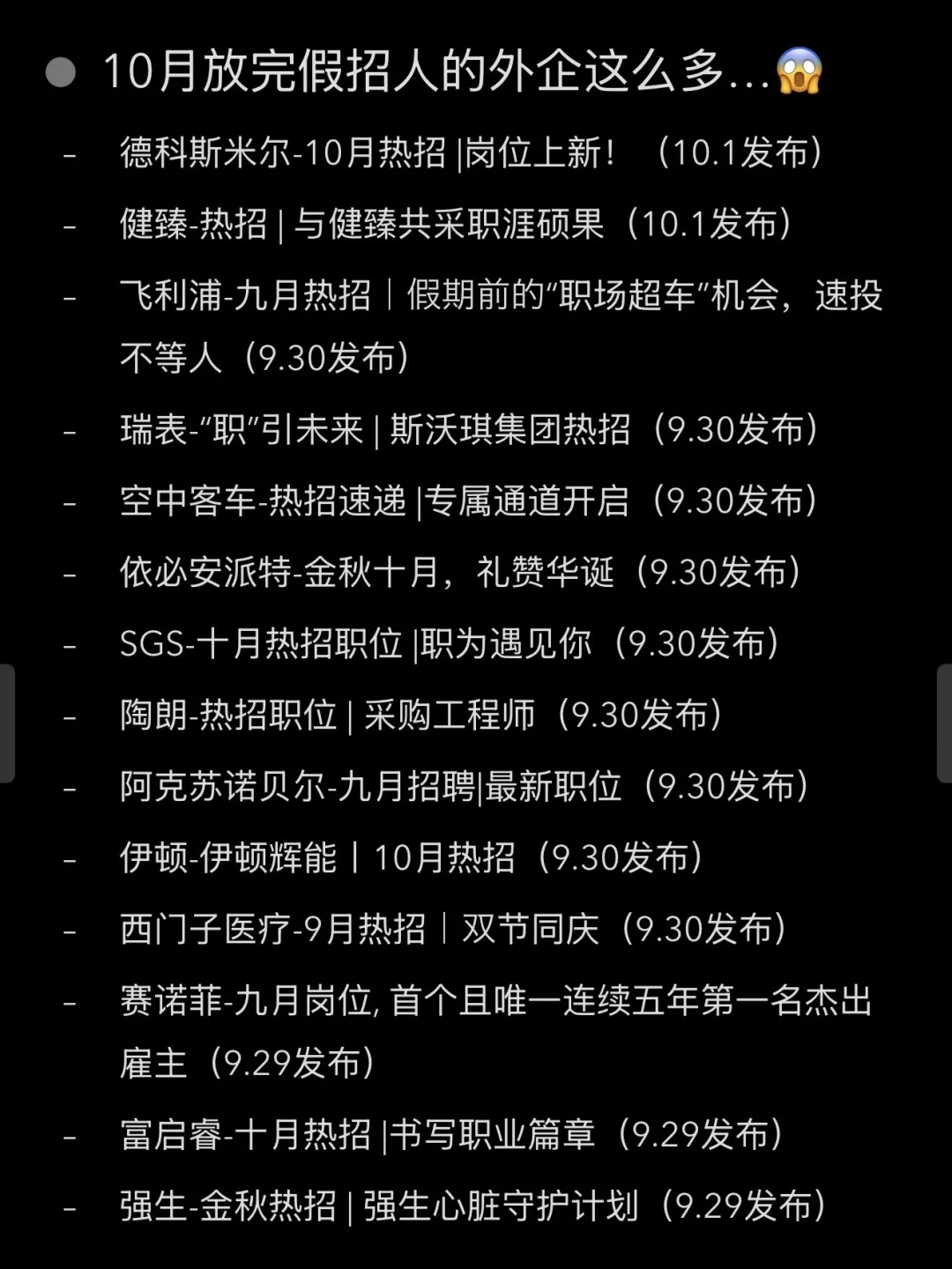 很多人以为国庆一过招聘就冷了。但今年还真不一样,不少外企假期后集中启动招聘,岗位量甚至比9月还多。