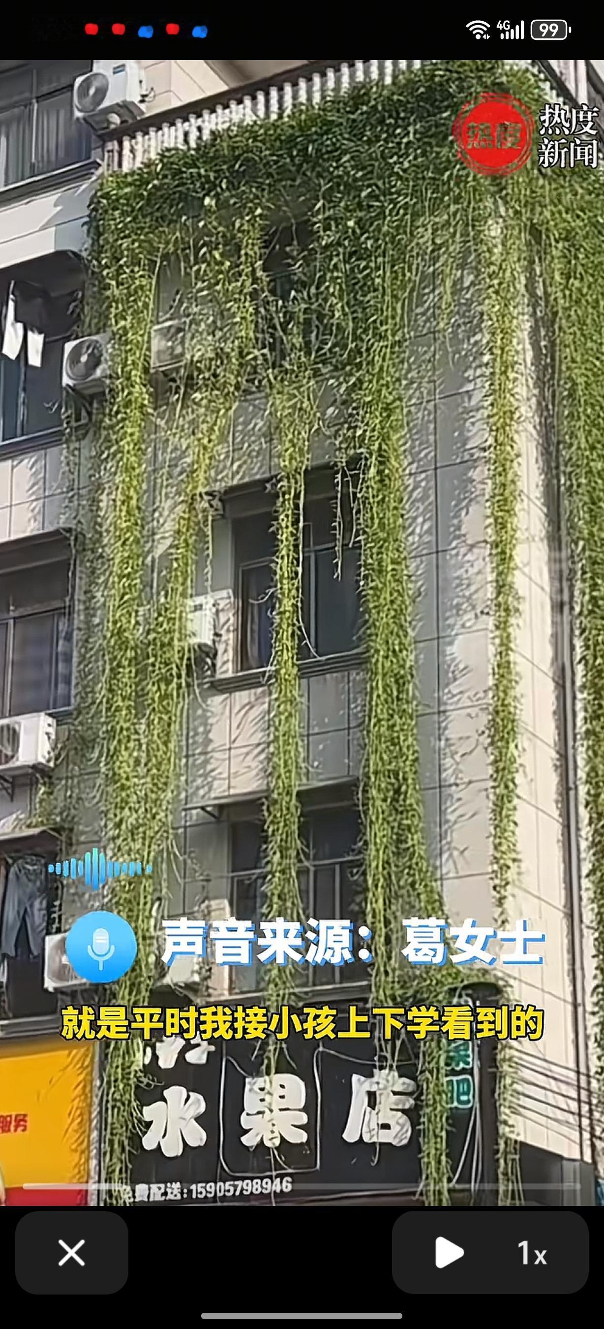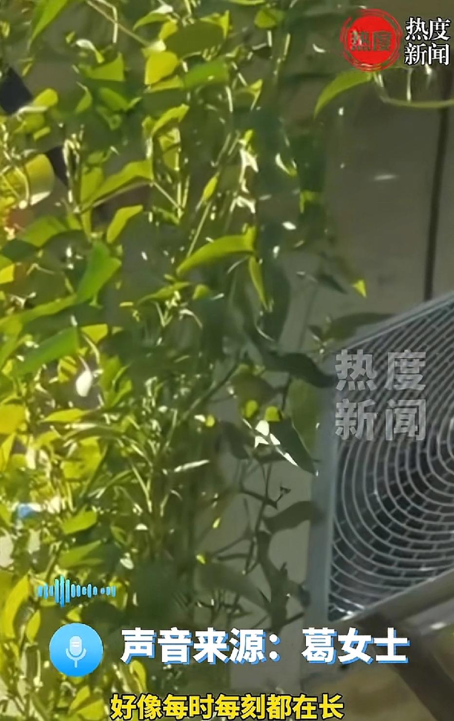 顶楼住户栽种的水培空心菜生长态势极好,竟垂落到了一楼,景象壮观得让路过的人都不禁