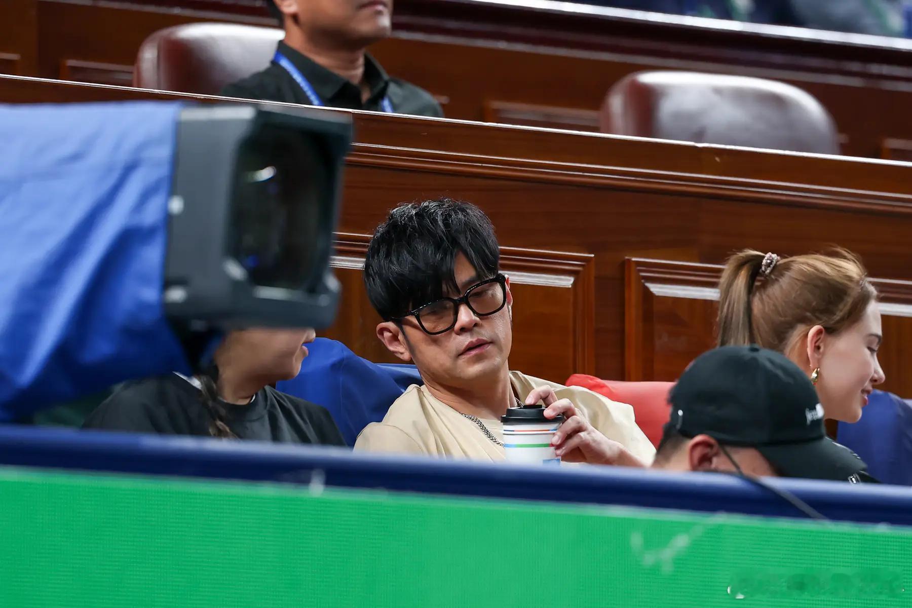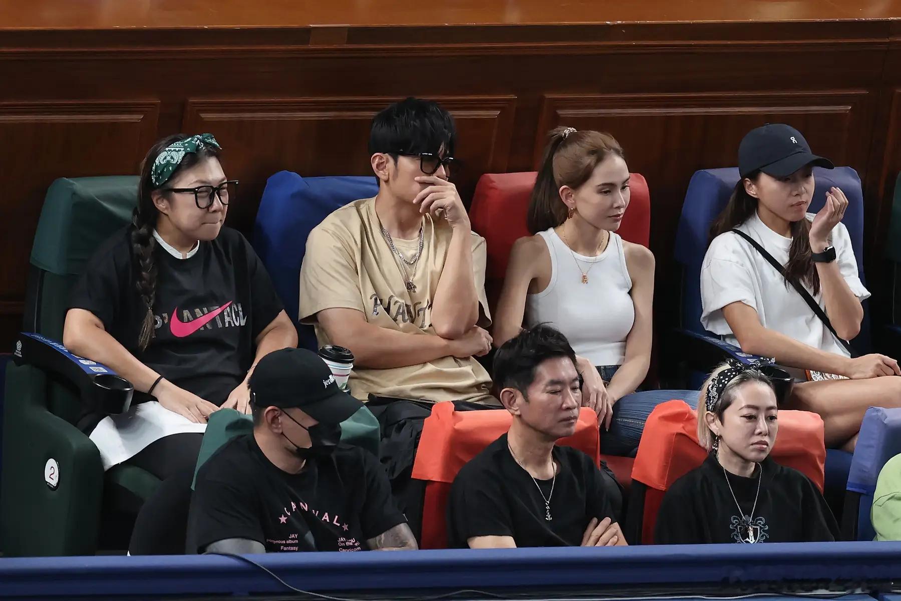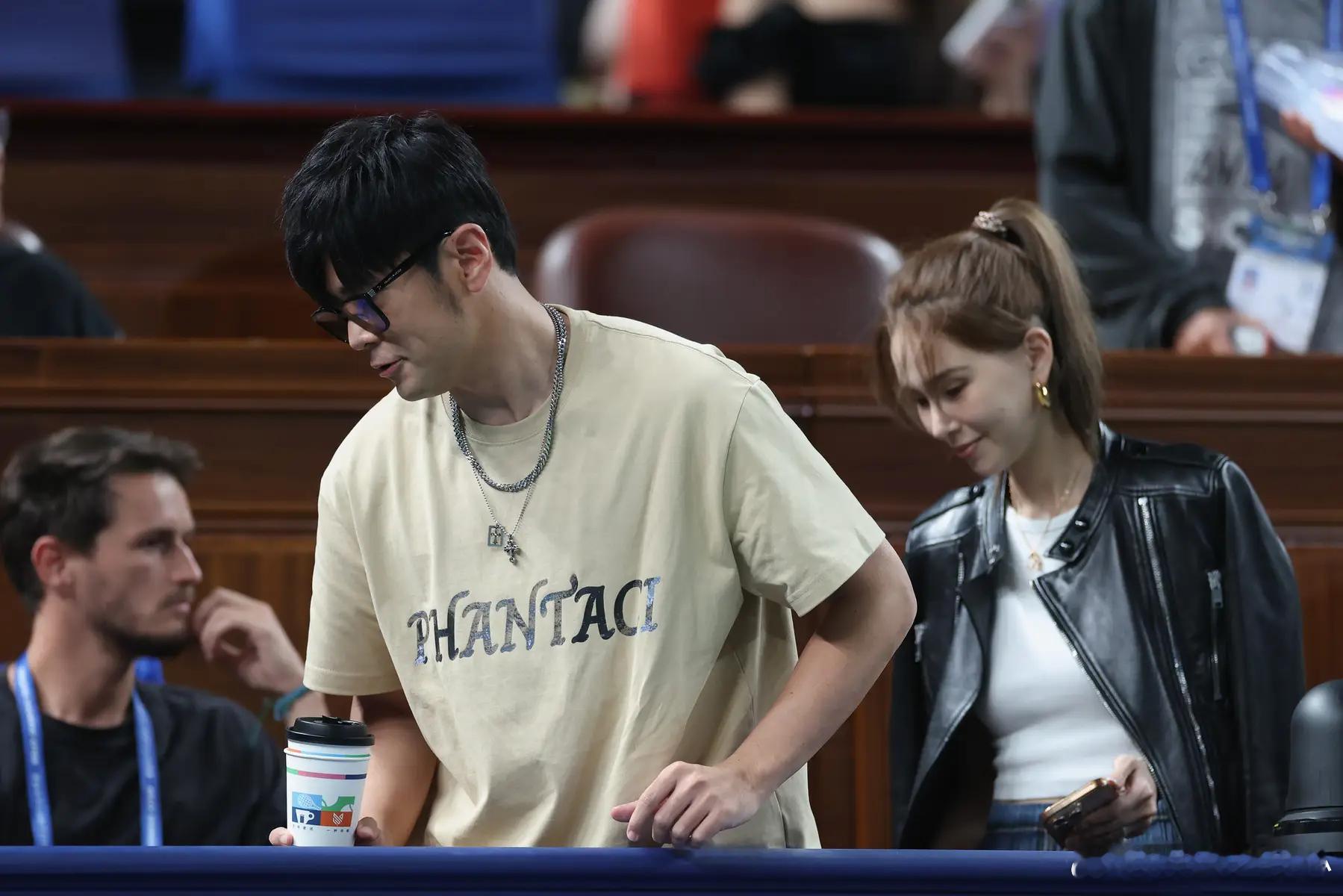 近日,一组周杰伦昆凌观战上海大师赛的照片流出。图中,周杰伦和昆凌坐在一起,两人打扮时尚。