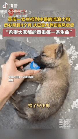 重庆,一名女生在街头上捡到一只中暑的流浪小狗,那会小狗已经奄奄一息,女生带它去宠