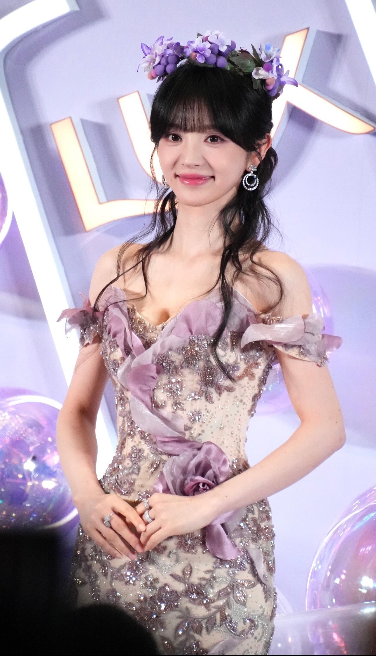 田曦薇紫玫瑰鱼尾裙2025年10月,田曦薇身着紫玫瑰鱼尾裙出席线下活动,其造型宛如花仙子。