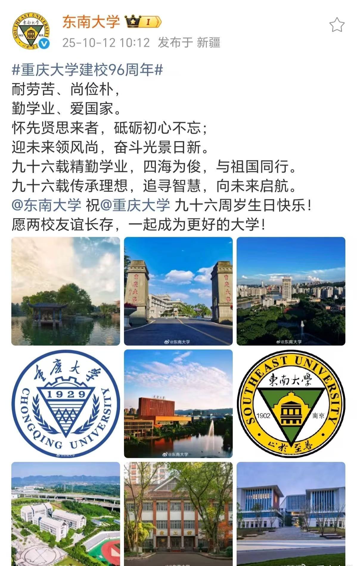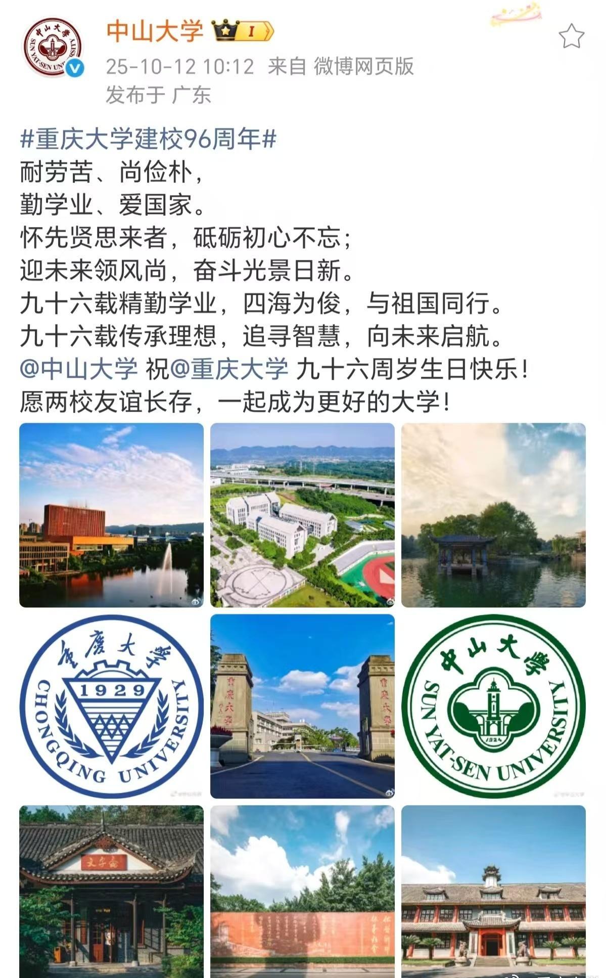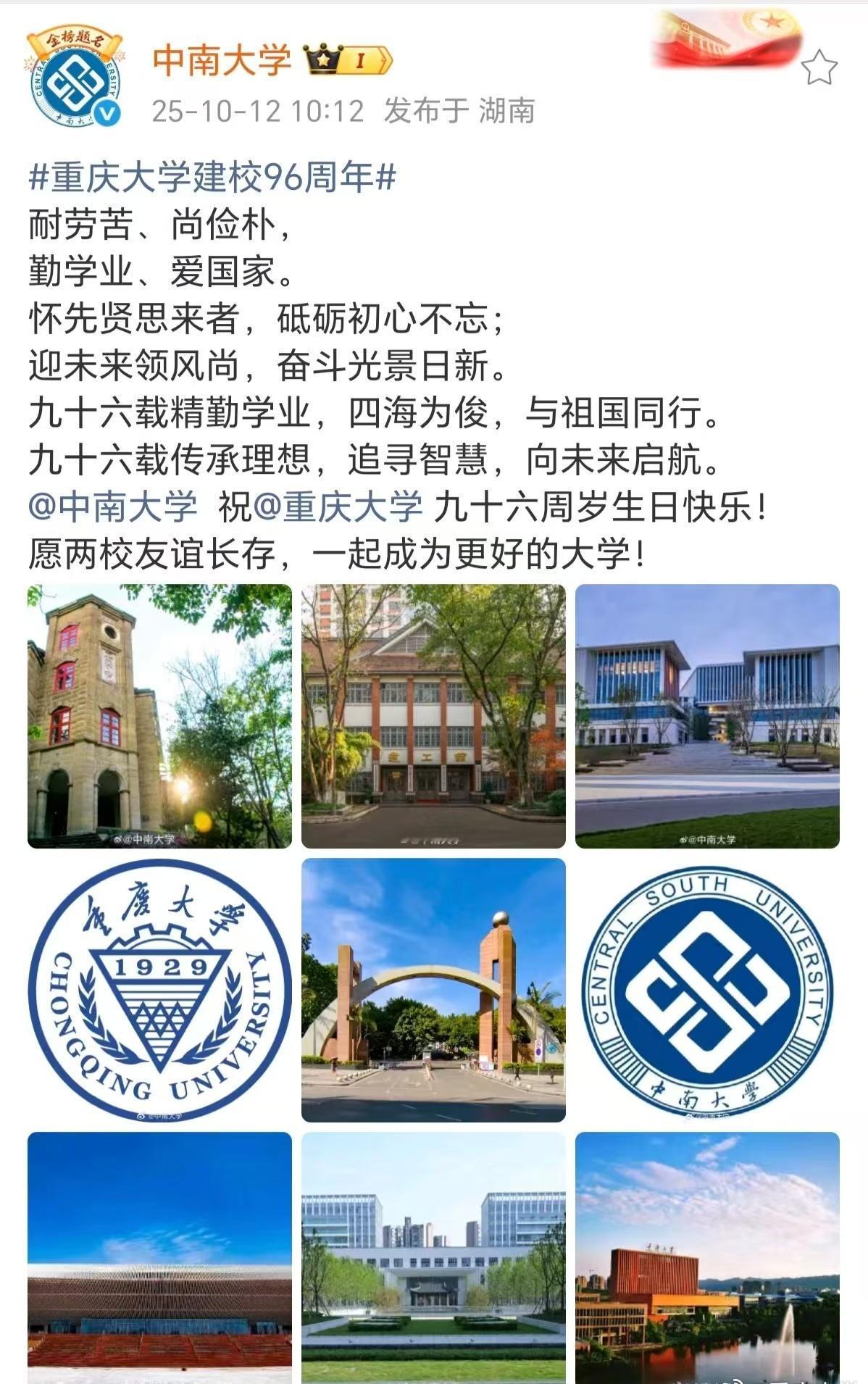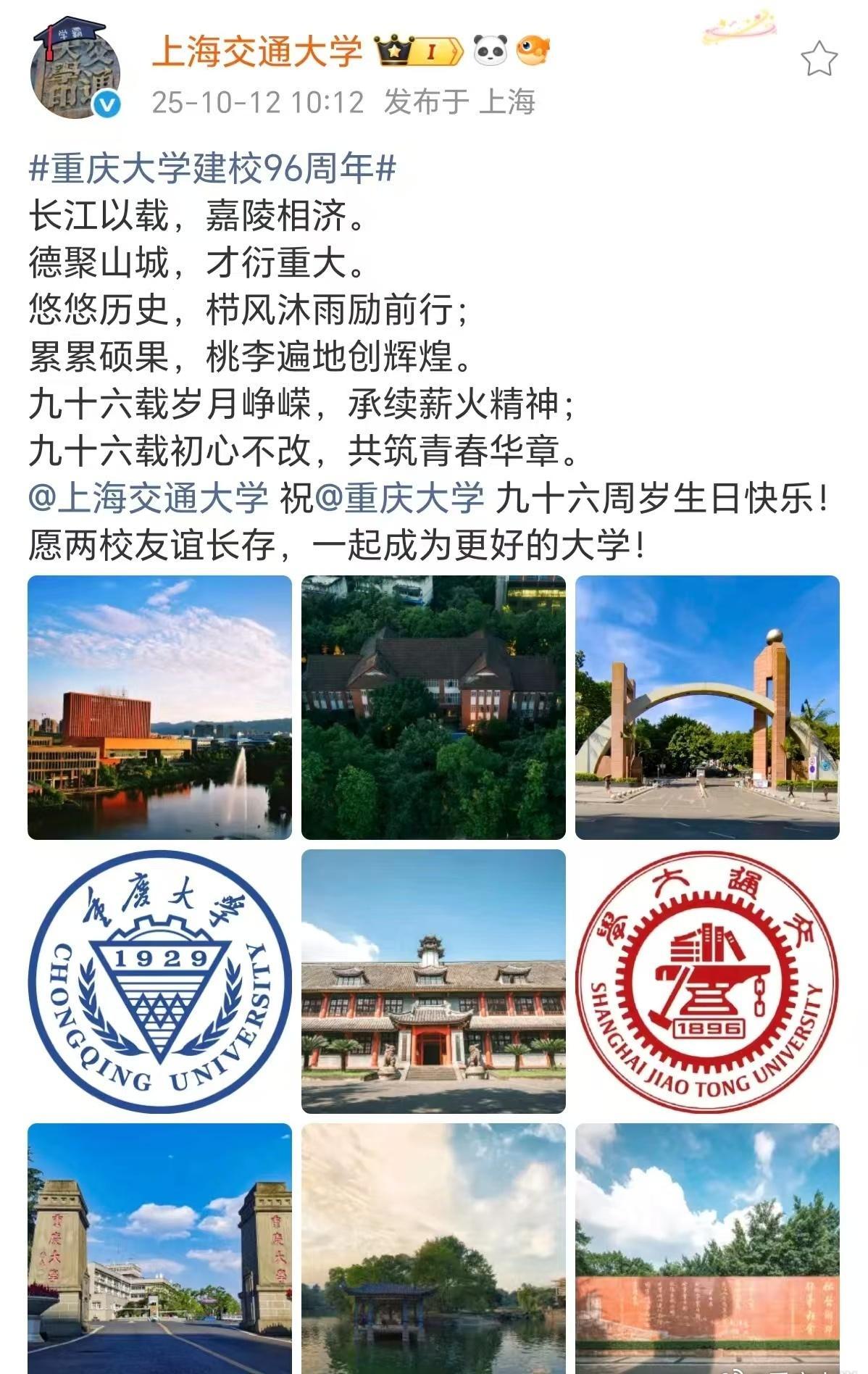 重庆大学超话重庆大学建校96周年今天,在重庆大学喜迎96华诞之际,22所兄弟高校