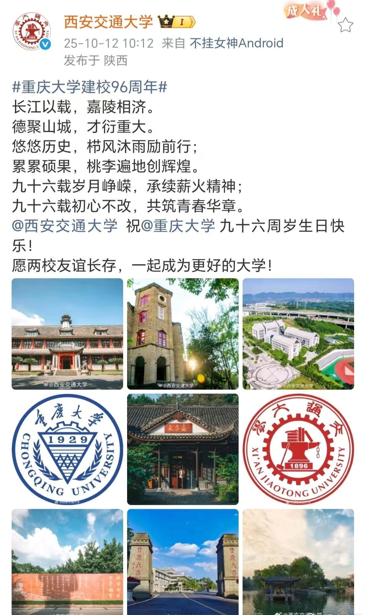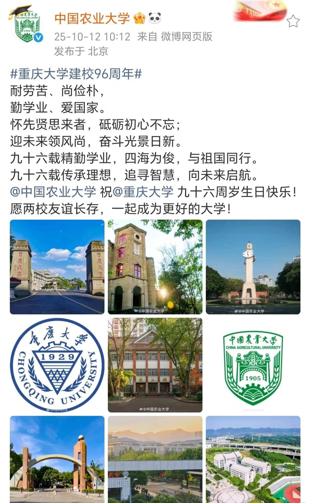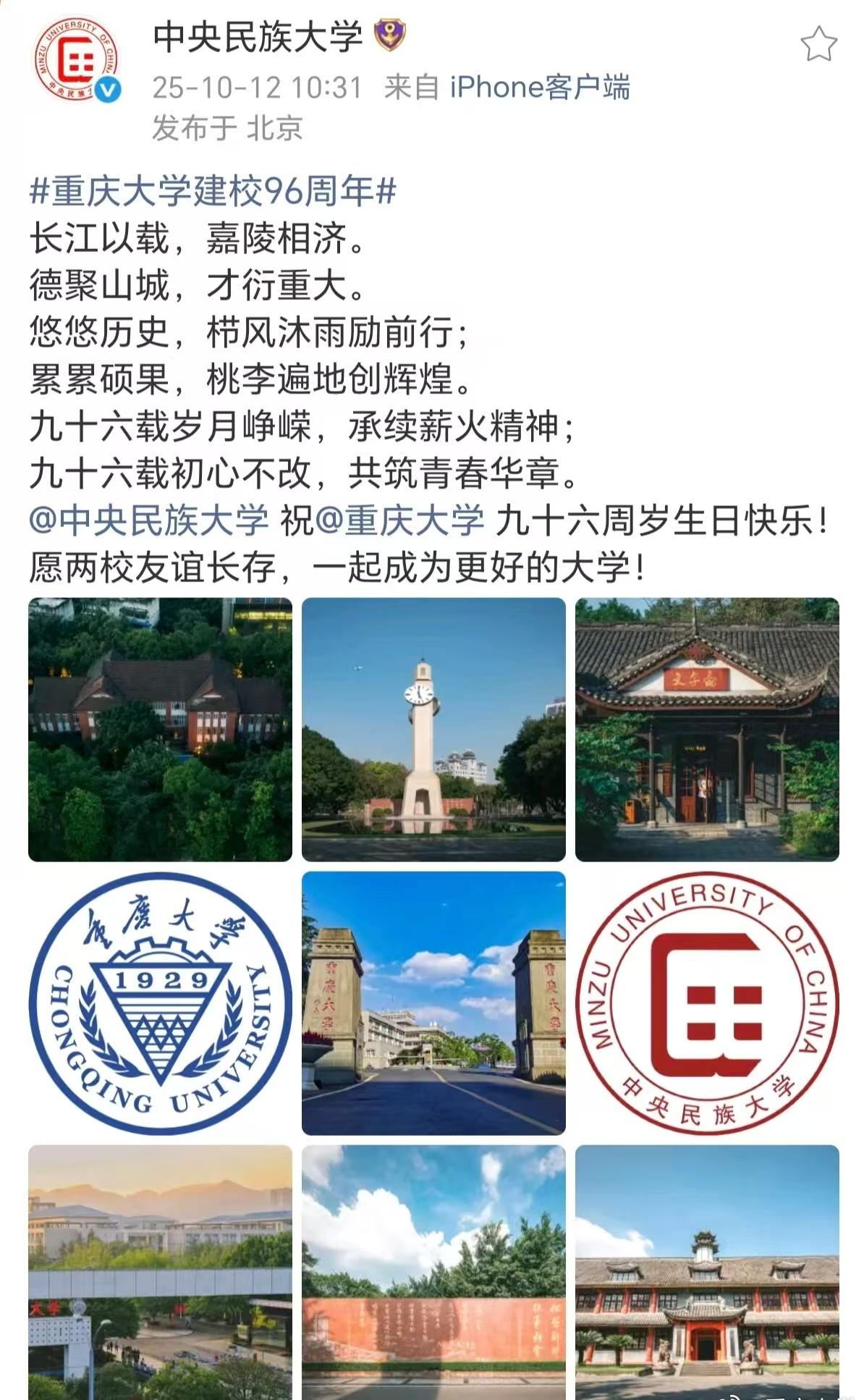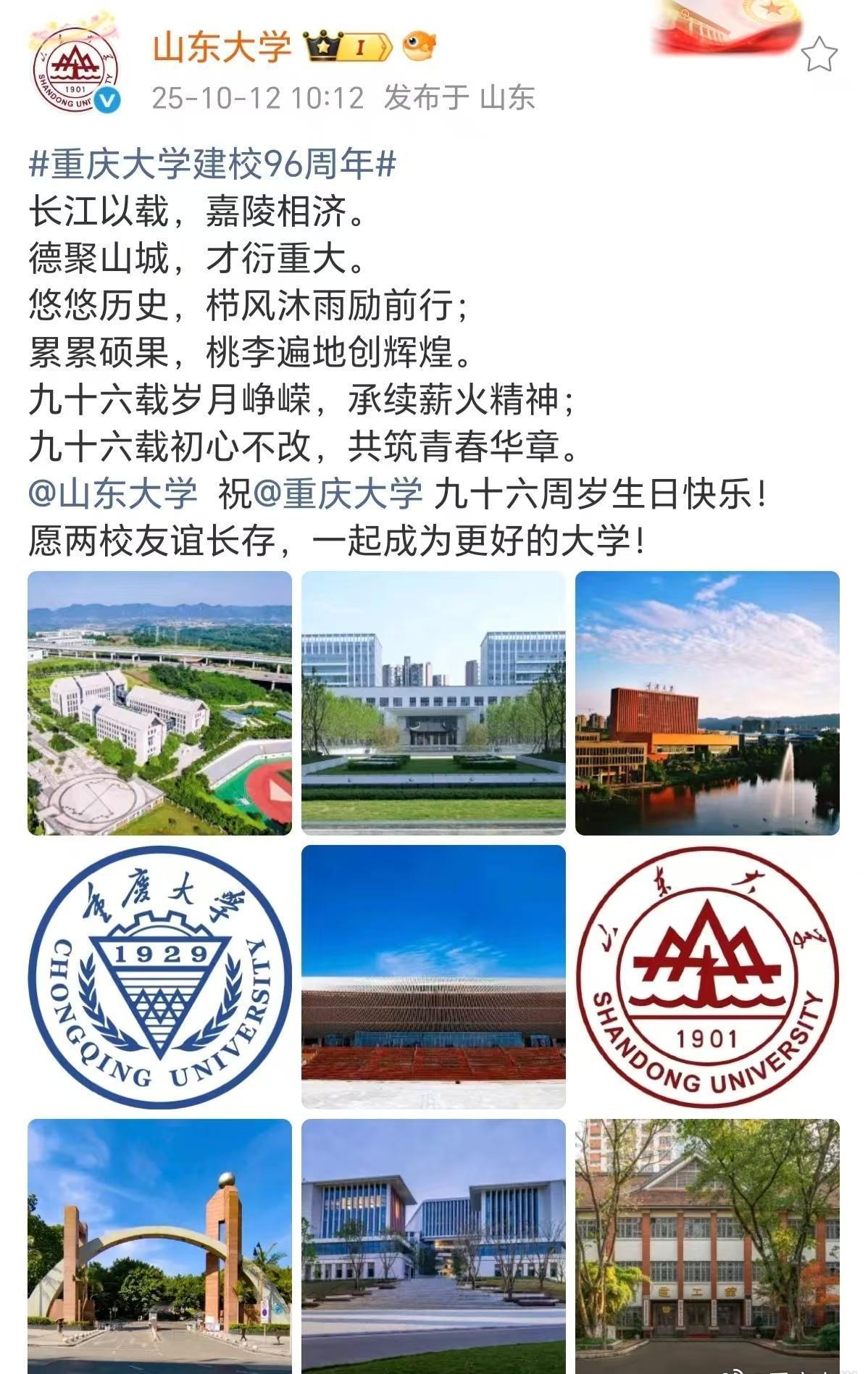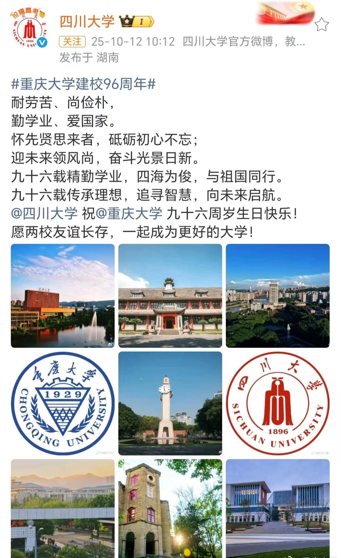 重庆大学超话重庆大学建校96周年今天,在重庆大学喜迎96华诞之际,22所兄弟高校