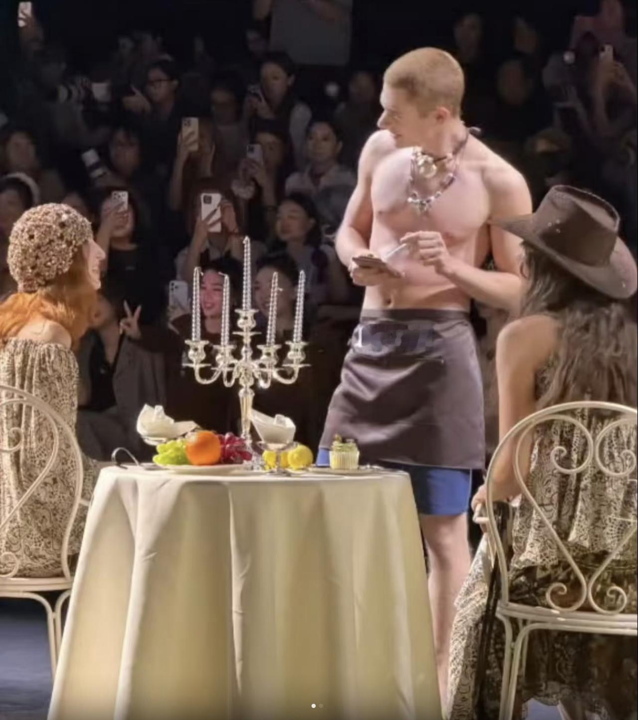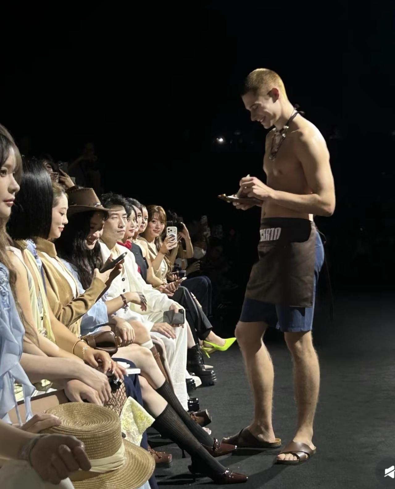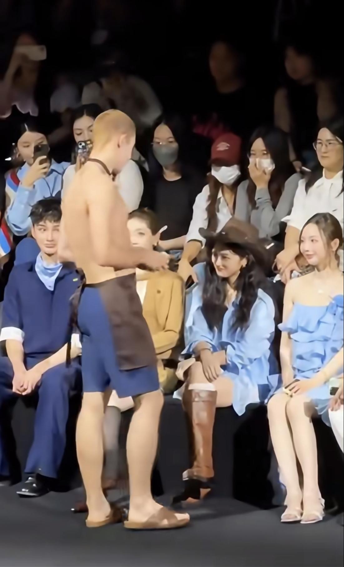 上海时装周走秀现场,沈月和帅小伙互动不好意思了。网友说猫猫狗狗总是能在人群中找到最怕他们的,然后过去蹭蹭。 沈月的眼神是躲闪的,还总是低头不好意思看模特,就被模特精准定位,贴脸开大互动,直接把沈月整红温了,不过沈月的这个反应也正常,毕竟模特长得真帅,穿的还很猛,多数人看到都会不好意思吧…… 沈月