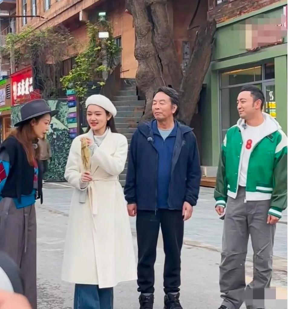 哇塞,身穿一袭白色风衣,戴着贝蕾帽的龙洋真是娇柔腰柳,龙眉凤目,霞姿月韵哈;细眉小眼的刘震云身材胖瘦适宜,气色盈和,看上去比一旁的尼格买提还要高呢,那位戴礼帽的金发女子是谁?