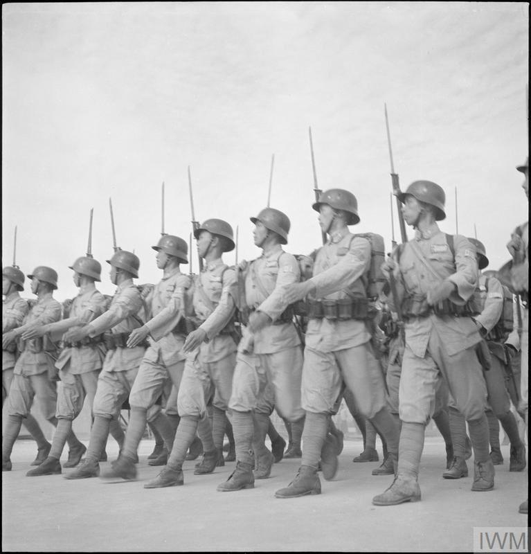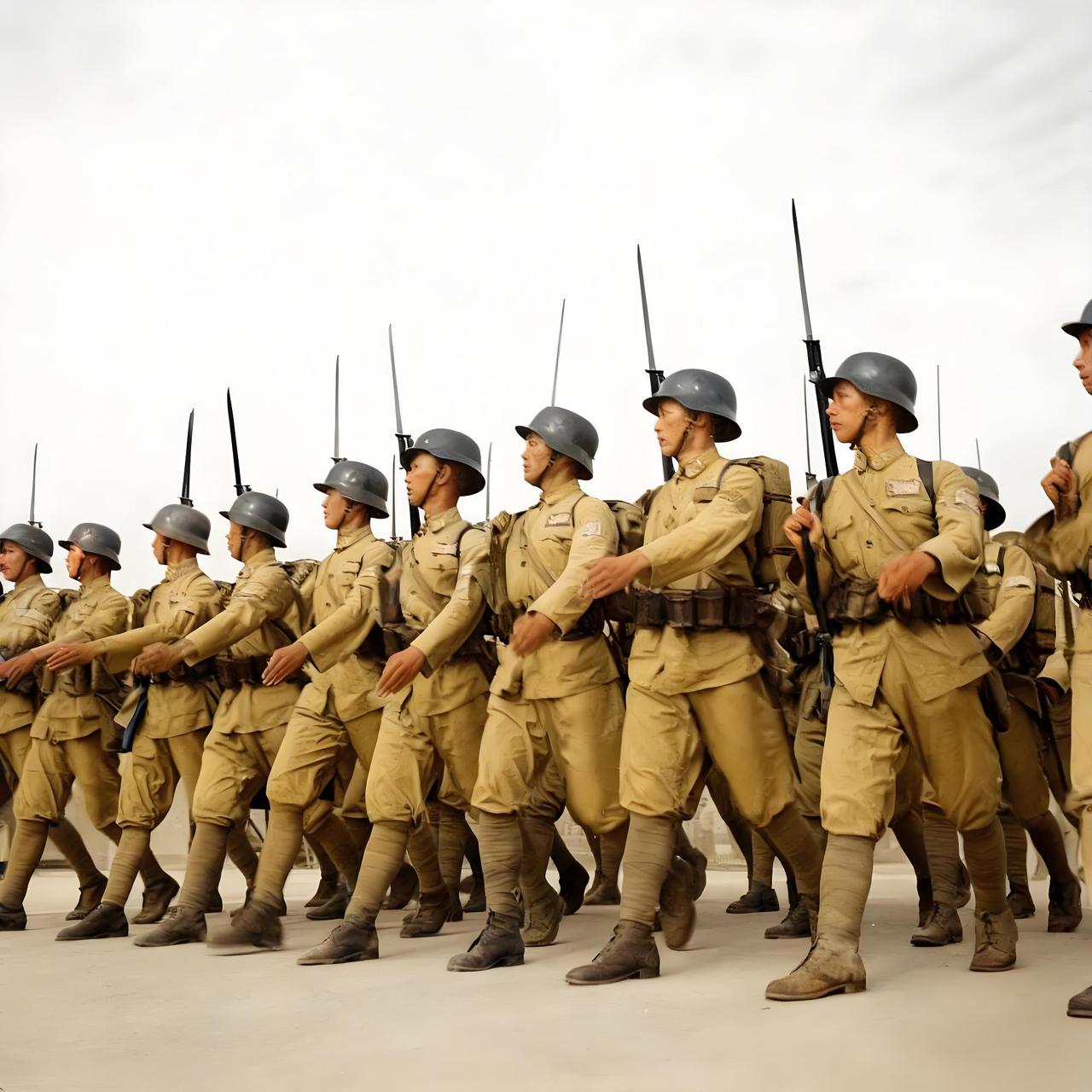 这张照片定格了抗战胜利前一年,成都中央军校学生阅兵的壮阔场面。画面里,一队队军校学生身着出操专用的土黄色军服,布料虽透着朴素却挺括整齐,下身搭配的短筒皮靴光面向内,在阳光下隐约泛着哑光质感,每一步迈得铿锵有力,尽显军人的挺拔姿态。他们手持步枪列队行进,枪身随步伐微微摆动,虽难精准分辨是汉阳造还是元年式,但那规整的持枪姿势,仍让人感受到训练的严苛。