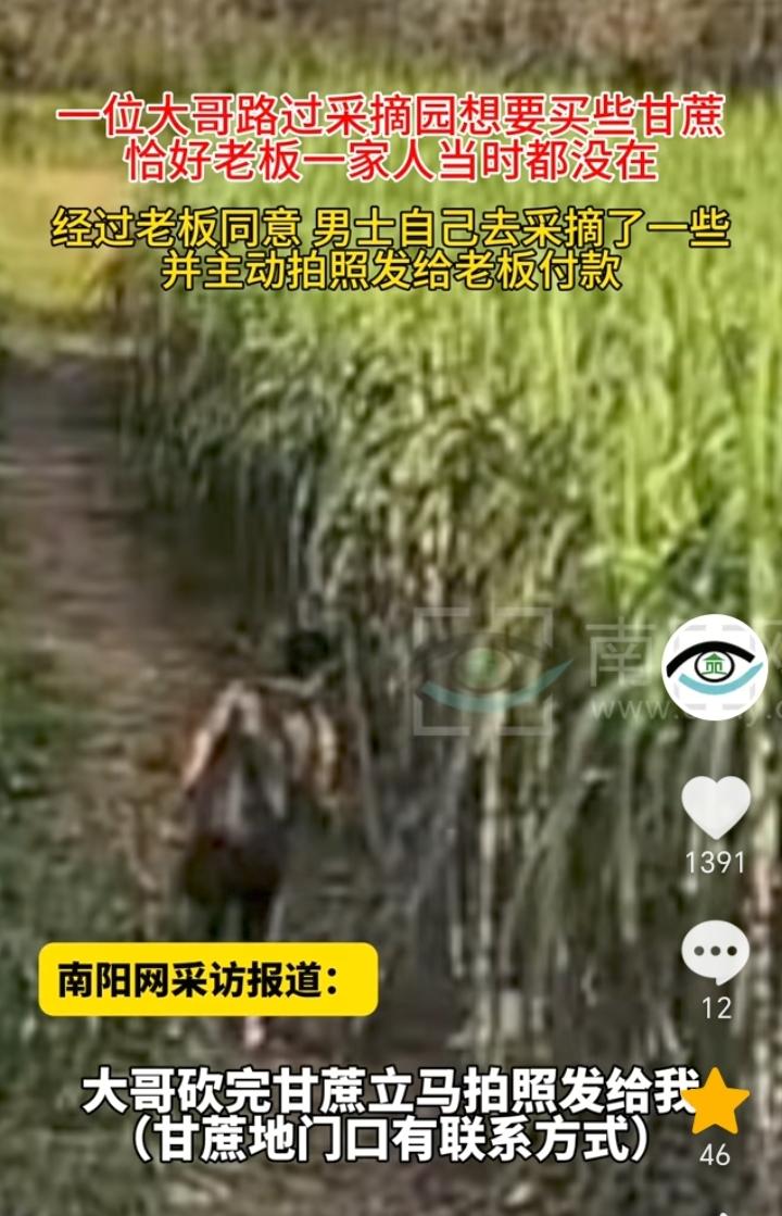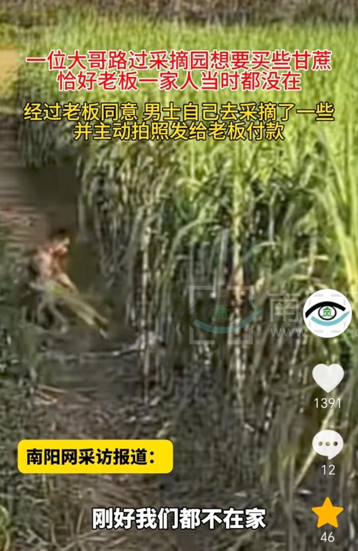 讲诚信!湖北黄冈,一男子路过一片甘蔗地,想买点甘蔗吃,于是就拨打了甘蔗地留的电话